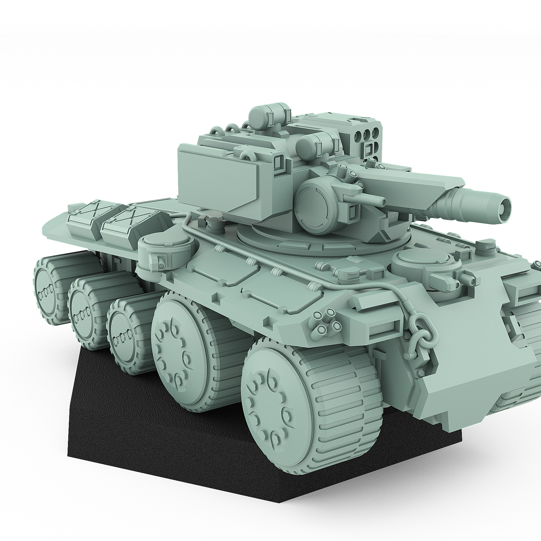Shodde L emerges from the fog of war, its turret rotating with purpose as it surveys the battlefield. This ground combat vehicle boasts a robust design, featuring a prominent cannon and advanced targeting systems, ready to unleash devastating firepower. As a frontline unit, it excels in both offensive and defensive maneuvers, providing crucial support to allied forces. In the lore of its world, the Shodde L symbolizes the relentless march of technological advancement, embodying the spirit of its creators who strive for dominance in every engagement. With its imposing presence, the Shodde L commands respect and fear alike, a true harbinger of conflict.