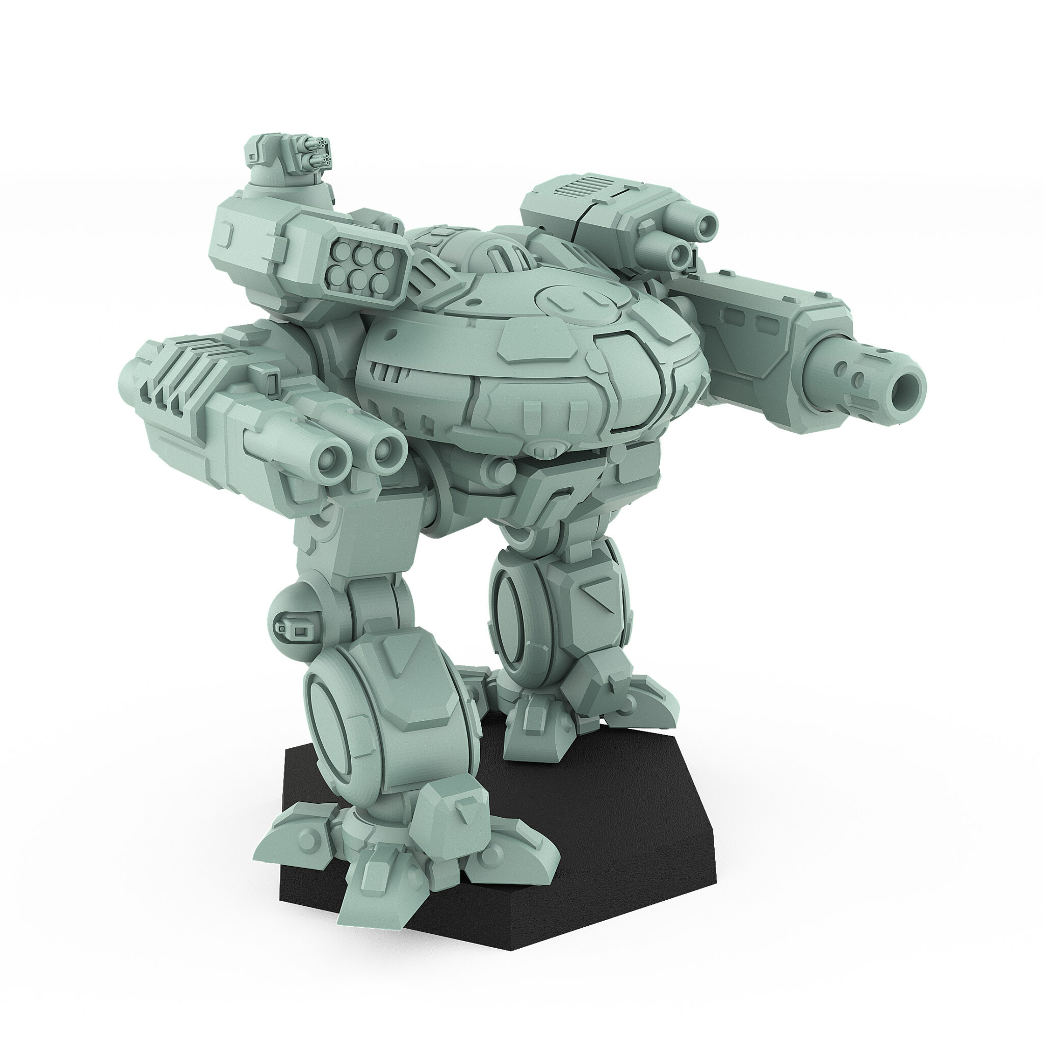 Turkina. In the chaos of the battlefield, the Turkina emerges as a powerhouse, its silhouette cutting through the smoke of conflict. Armed with an array of dual missile launchers and heavy autocannons, it is designed for both offensive and defensive maneuvers, capable of delivering devastating firepower while maintaining a solid defensive stance. This mech excels in holding strategic positions, using its firepower to suppress enemy advances and protect allied forces. Originating from a storied lineage of combat machines, the Turkina reflects the relentless evolution of warfare technology, embodying the spirit of its creators. As the dust settles, the Turkina stands tall, a symbol of strength and resilience amid the chaos.