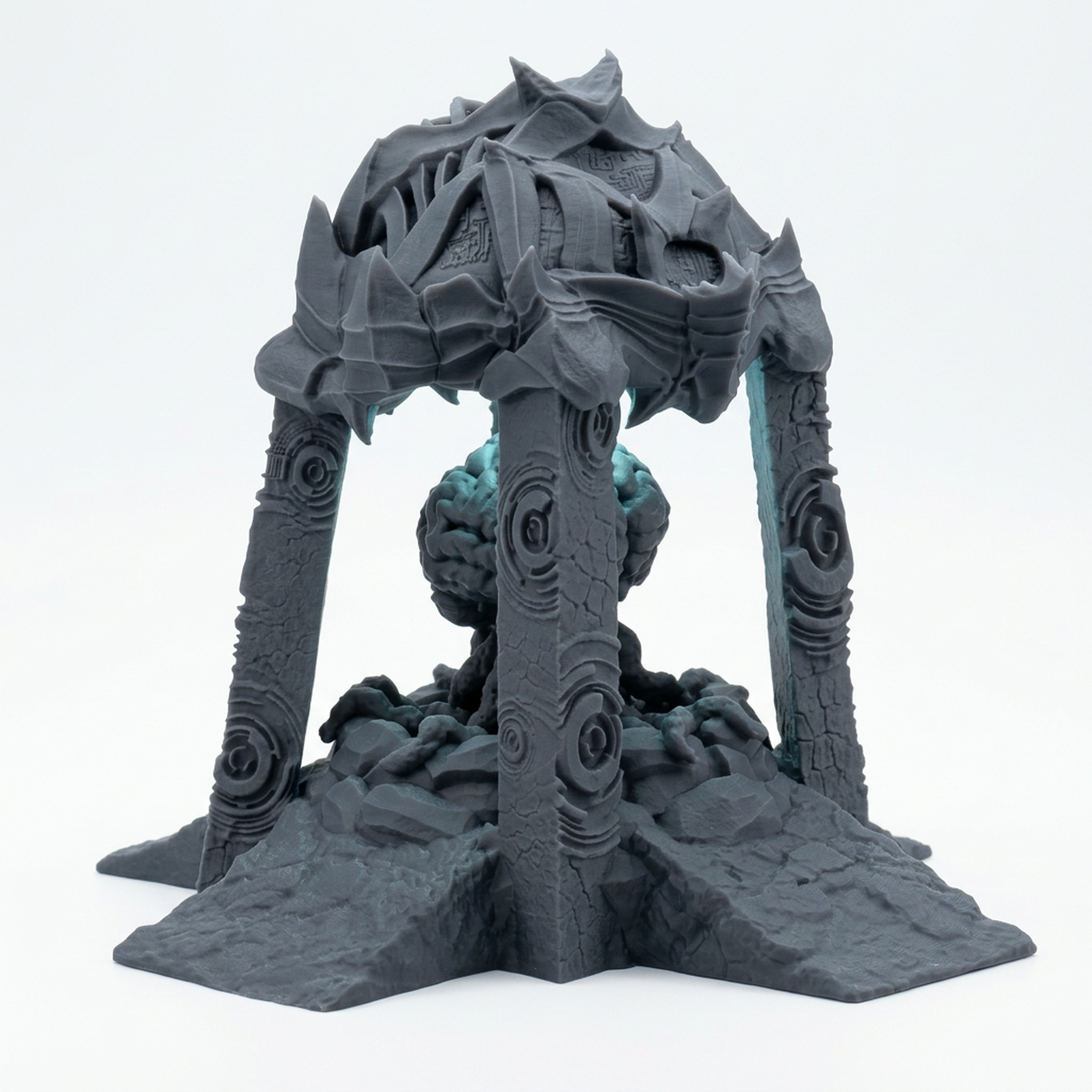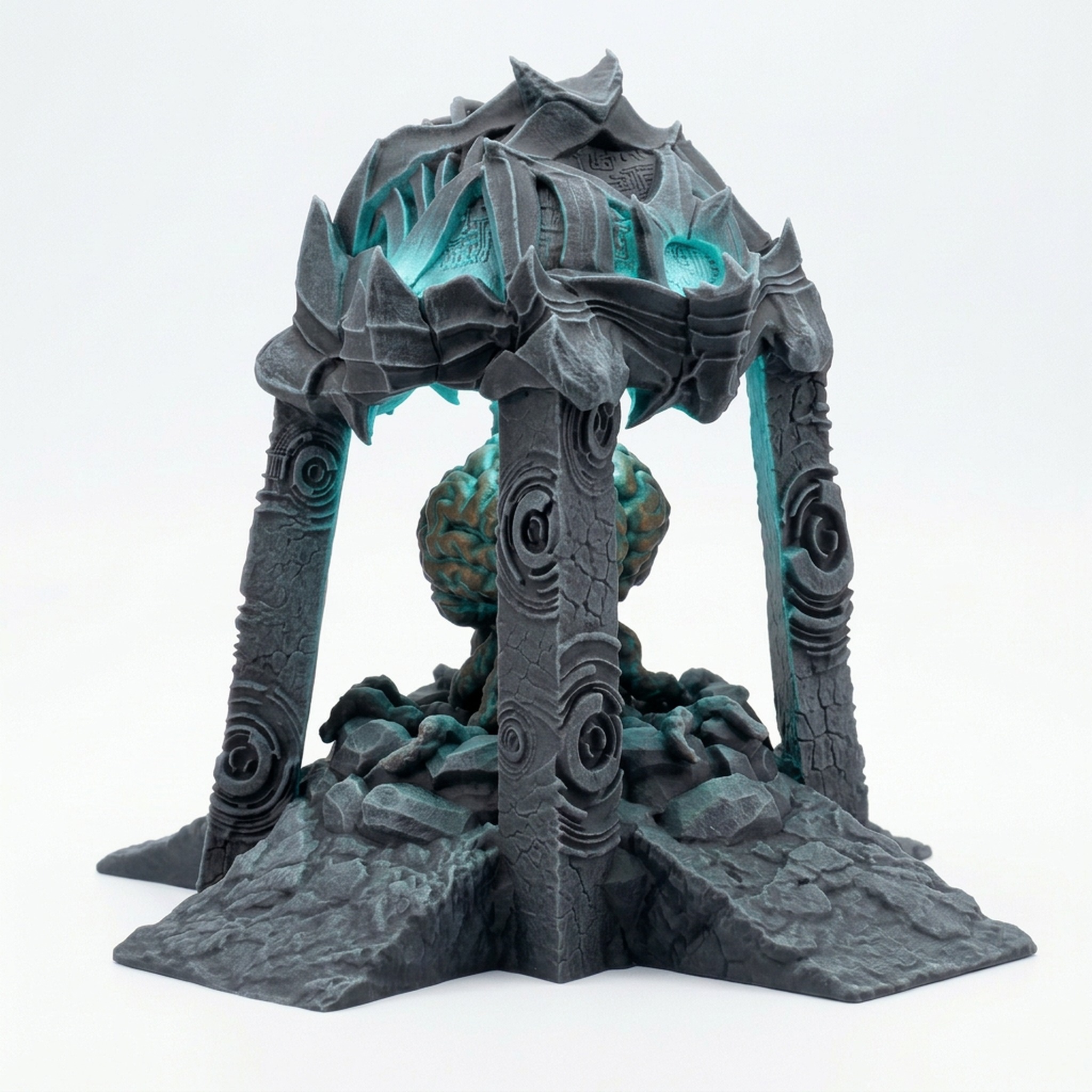 This miniature is a versatile addition to any fantasy or sci-fi tabletop RPG, seamlessly fitting scenarios involving ancient ruins, alien dimensions, or cosmic dread. It serves as an imposing terrain piece, a high-stakes objective, or a unique monstrous creature. Its large presence and complex details provide an engaging challenge for hobbyists looking to showcase their painting skills, particularly with glow effects or alien skin tones. Add a touch of the unknowable to your next campaign with this exceptional piece.