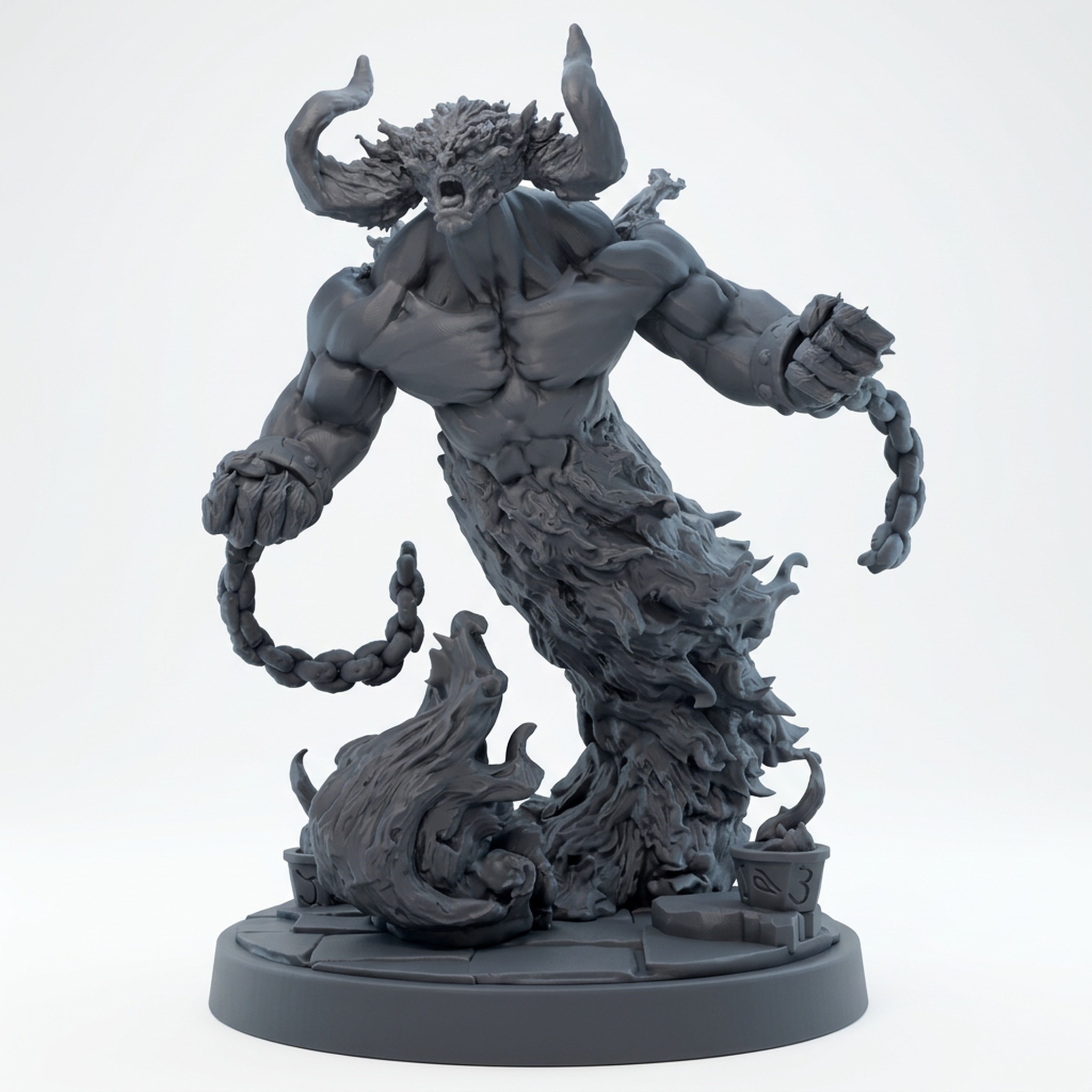 Unleash elemental fury on your tabletop with the Spell Bound Genie Fire miniature, an intricate sculpt from the Cave Of Blunders collection by Mammoth Factory. This dynamic figure perfectly captures the wild, untamed nature of an Efreet, with flickering flames replacing a conventional lower body, creating an imposing presence. Clad in shackles and chains that hint at a powerful being struggling against arcane bondage, this genie is ready to grant wishes… or perhaps more likely, rain down destruction. The sculpt quality is exceptional, with sharp musculature and detailed fire textures that are a joy for any miniature painter. Whether used as a fearsome boss monster in your next Dungeons and Dragons campaign or as a painting challenge, this genie is guaranteed to turn heads. This high-quality 3D printed resin miniature brings stunning detail to your games.