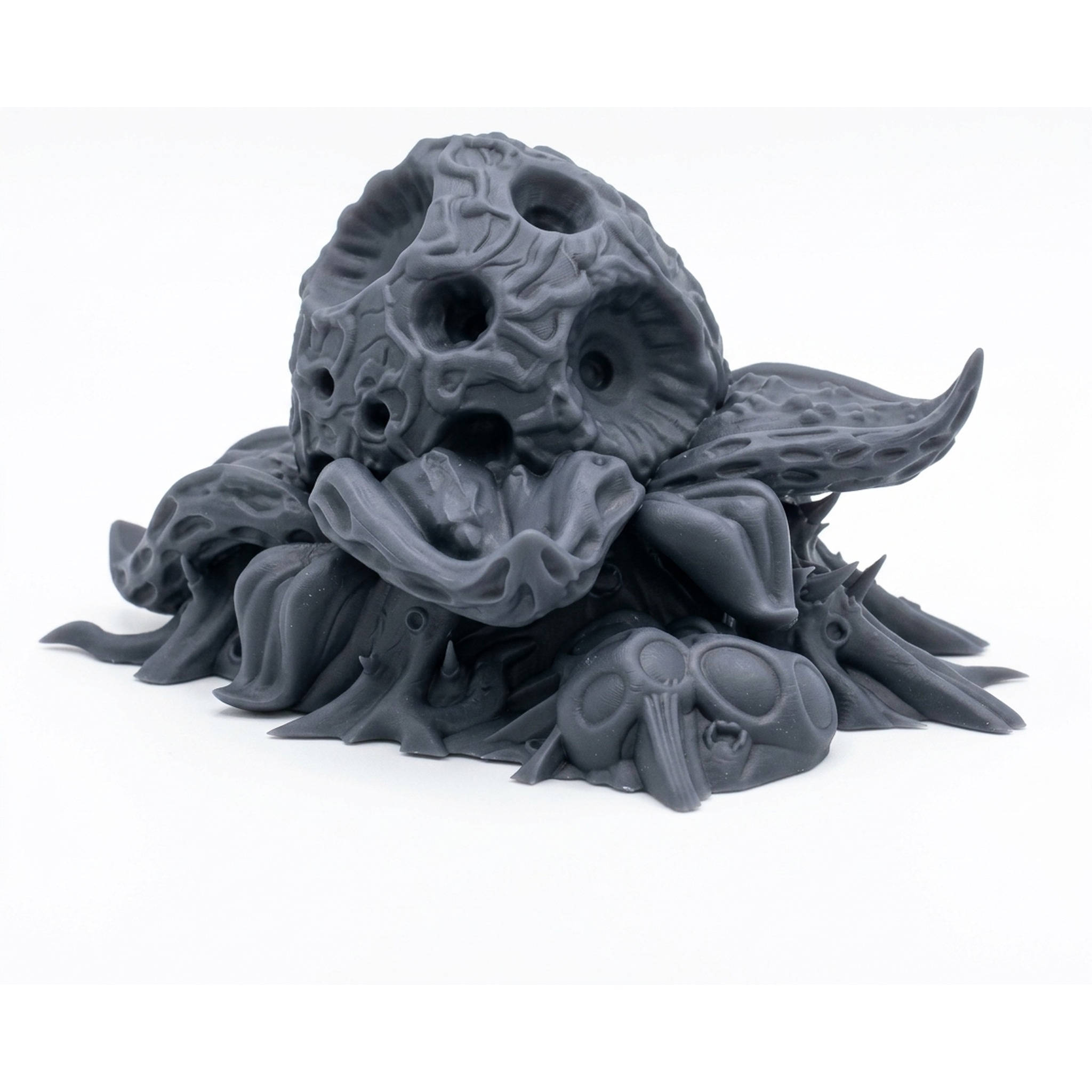 Add a touch of the macabre to your gaming table with the Ballplant miniature from the chilling Fear The Void collection by CastnPlay. This grotesquely beautiful sculpt captures an alien, fungal horror: a central, bulbous orb riddled with multiple orifices and tendrils, emerging from a cluster of otherworldly leaves and pods. Its unique, spherical form and textured surface make it a fascinating piece to paint and a terrifying encounter for your adventurers.