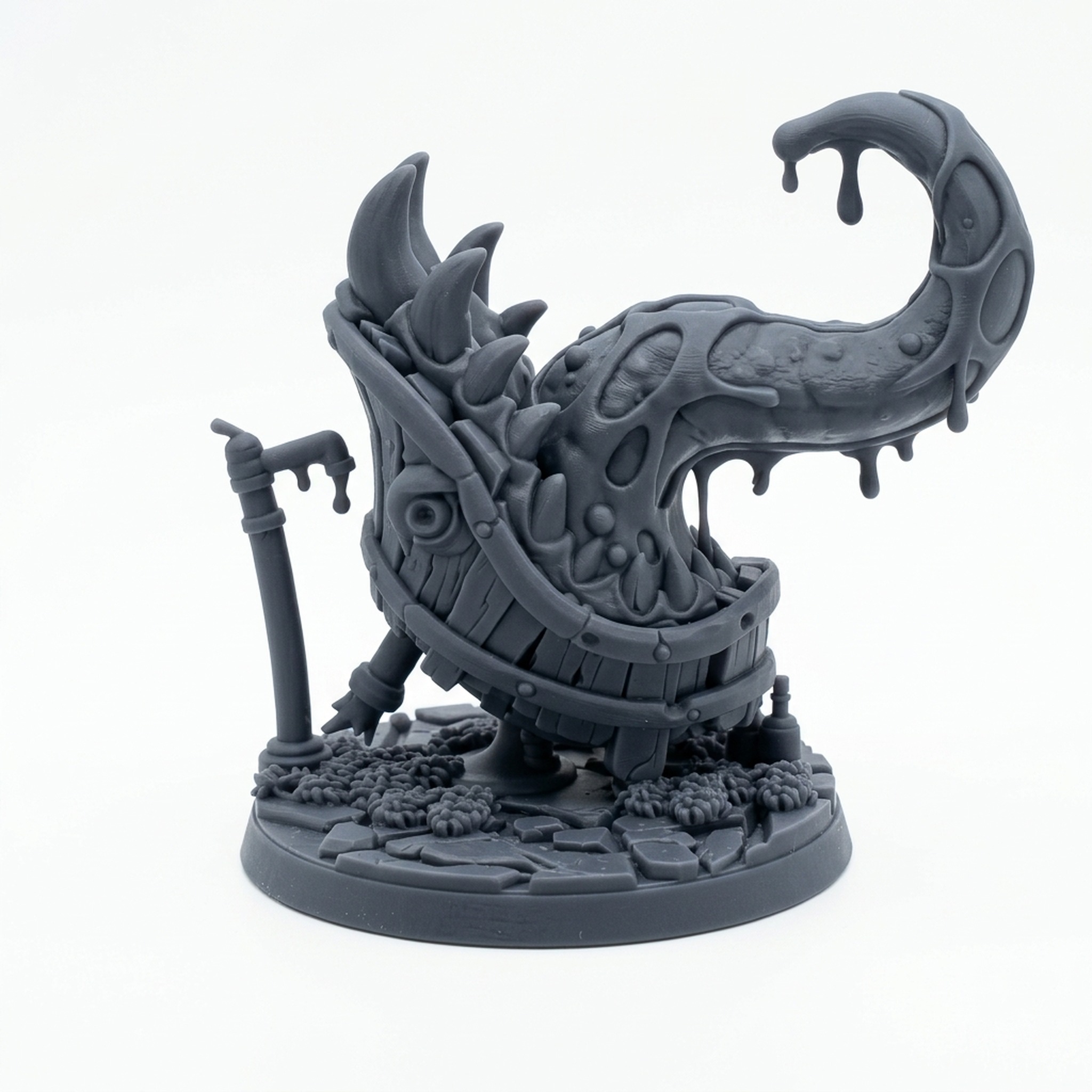 Introduce a terrifying new threat to your tabletop sessions with the Bathtube Mimic, part of the acclaimed 'Mimics Mayhem' collection by designer CastnPlay. Forget unassuming treasure chests; this monstrosity disguises itself as an ordinary wooden bathtub, complete with a functional-looking faucet and plinth. The illusion shatters when an unsuspecting adventurer approaches. As sculpted, a massive, muscular tongue with grotesque texture bursts forth, turning a moment of relaxation into a fight for survival. This highly detailed miniature captures the gruesome transformation perfectly, making it an ideal ambush encounter for any dungeon, tavern, or even a wizard's personal chambers.