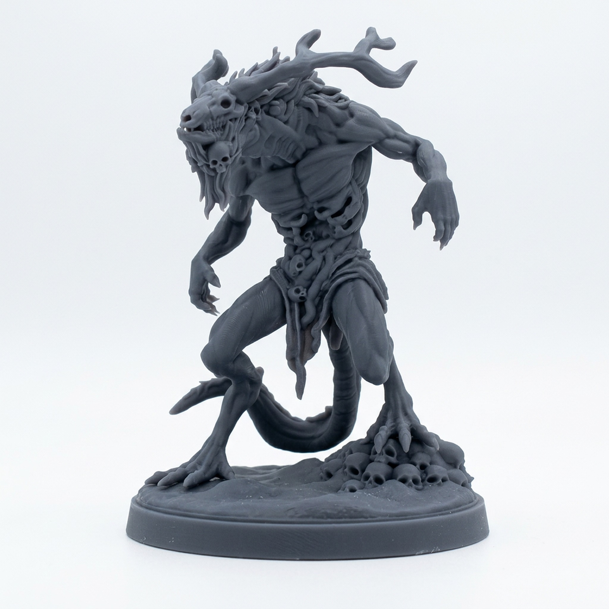 Unleash primeval terror upon your tabletop with Craver 1, a terrifying beast from Mammoth Factory's Frostwilds 2 collection. This grotesque aberration is a masterpiece of dark fantasy design, featuring a gaunt, bipedal form culminating in a twisted skull-like face and massive antlers. Its emaciated physique, exposed bone-like rib cage, and powerful, clawed limbs convey a relentless, ravenous hunger that will send shivers down any adventurer's spine. The model's dynamic pose captures it on the prowl, ready to pounce on unsuspecting prey.