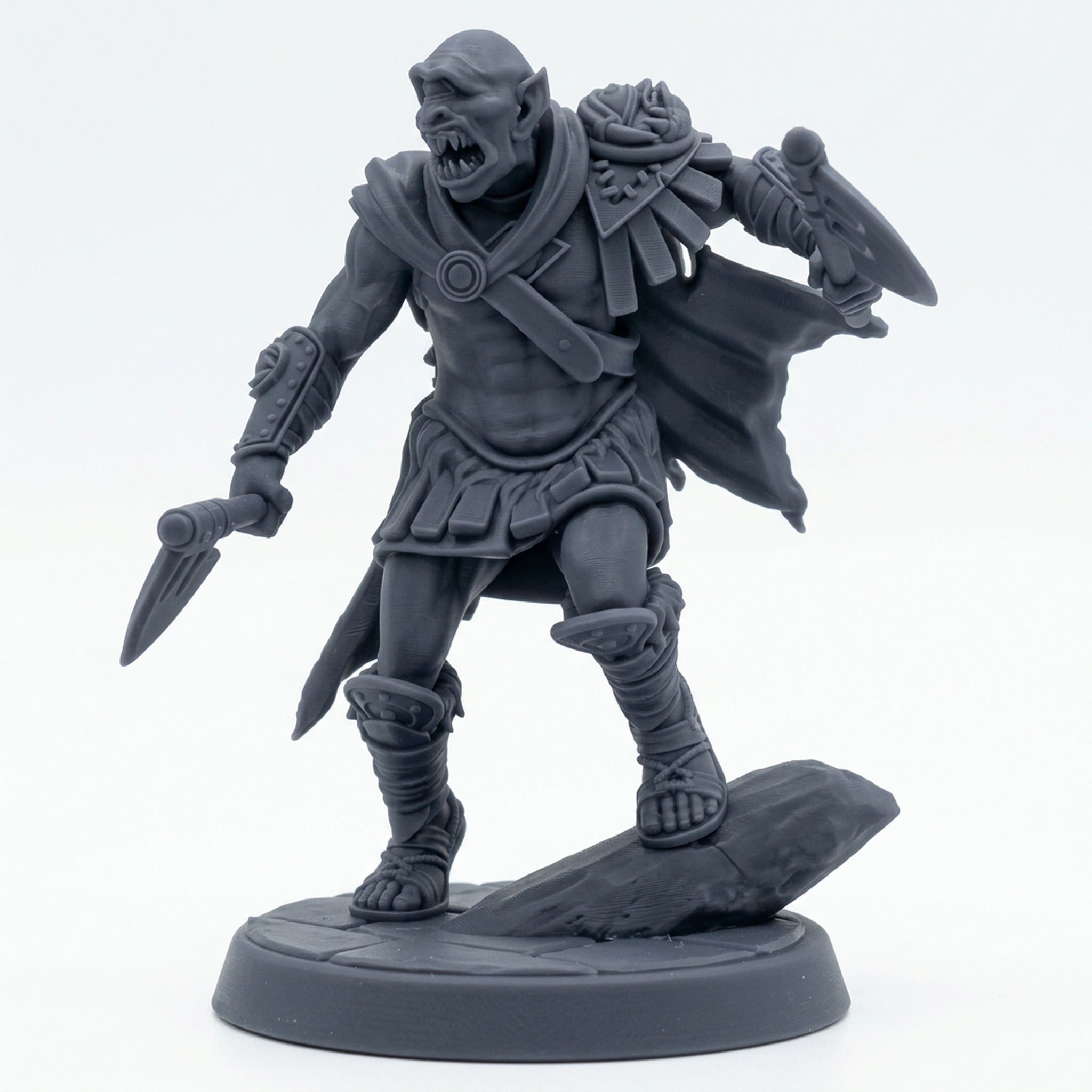 Painters will find a goldmine of texture in this highly-detailed print. From the aged leather straps and hammered metal sections to the rugged skin and flowing cape, there's a wealth of surface detail to explore with your brush. The scale is ideal for modern 28mm-32mm wargaming and roleplaying games, designed to stand out as a significant threat. Crafted with precision from high-quality photopolymer resin, this model ensures that every detail, down to the buckles and fierce teeth, is sharply rendered. Make a lasting impression on your players and collection with this Cyclopean miniature.
