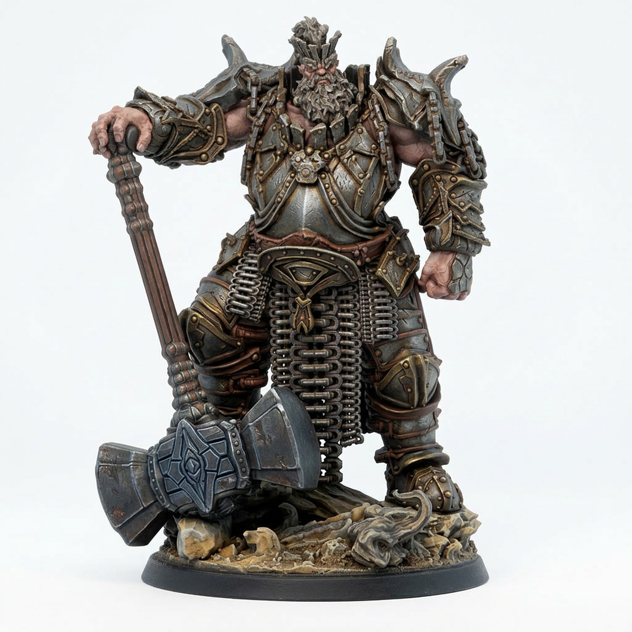 The sculpt quality is exceptional, featuring textural details from his braided beard and stern facial expression to the runic etchings and chained elements of his war gear. Every surface, including the jagged rock and skull-strewn base, is designed to catch the eye and provide a satisfying challenge for miniature painters. Whether as a formidable boss monster for your next D&D campaign or a centerpiece in your painting showcase, this massive brute commands attention.