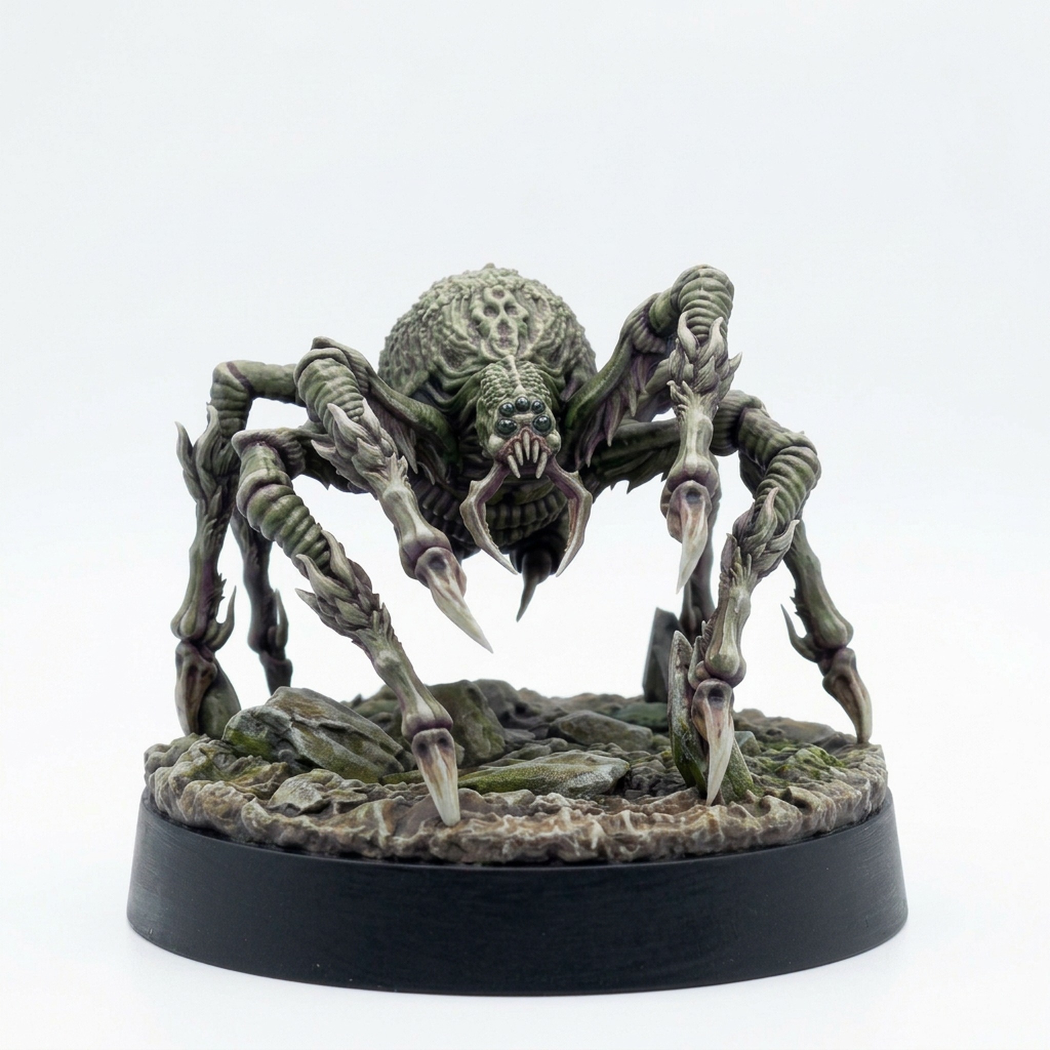 Painters will appreciate the intricate details across the exoskeleton and multiple limbs, offering a rewarding challenge for various painting techniques, from alien coloration to shimmering, multi-dimensional effects. This miniature stands ready to weave webs and dread in your DnD campaigns, Pathfinder adventures, or any fantasy wargame needing a large, horrifying arachnid presence. This product is a high-quality 3D printed resin miniature.