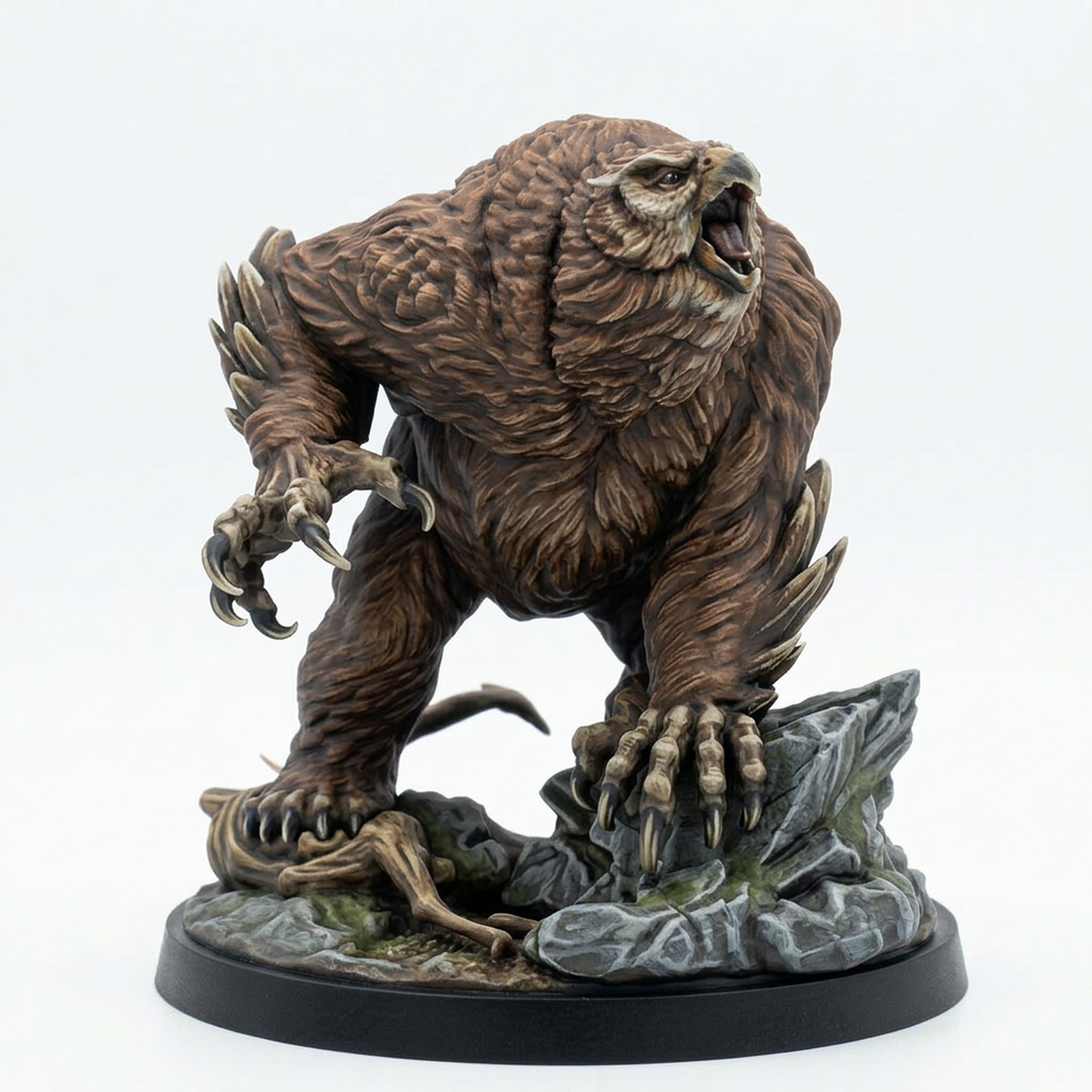 Whether this owlbear serves as a guardian of an ancient forest, a ferocious random encounter, or a powerful druidic ally, it promises to make a memorable impact on your players. The level of detail from Mammoth Factory is exceptional, ensuring that painters will find plenty of texture to work with, while Dungeon Masters will appreciate having such a imposing figure to represent this iconic D&D monster. Bring this apex predator to your game and let the hunt begin!
