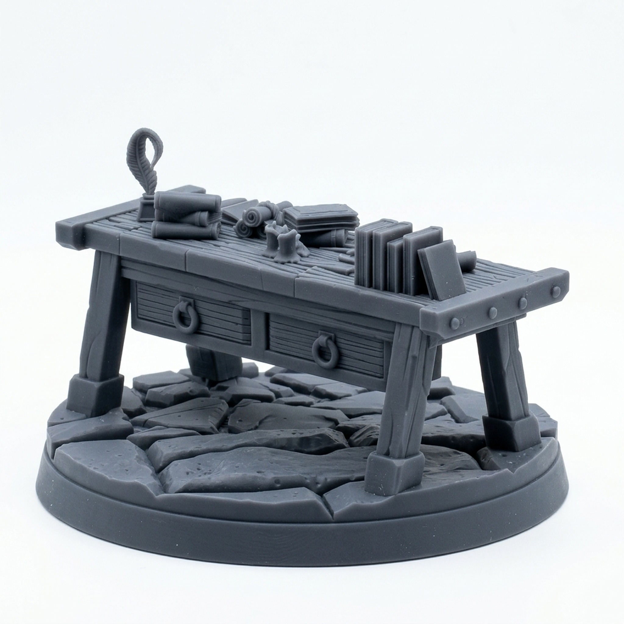 A timeless classic of tabletop gaming, this incredibly detailed Table Mimic from CastnPlay's Mimics Mayhem collection is ready to ambush unsuspecting players. Choose between the perfectly disguised object form, complete with sculpted books, scrolls, and quill, or the terrifying creature reveal, showcasing a monstrous mouth with razor-sharp teeth and a long, prehensile tongue.