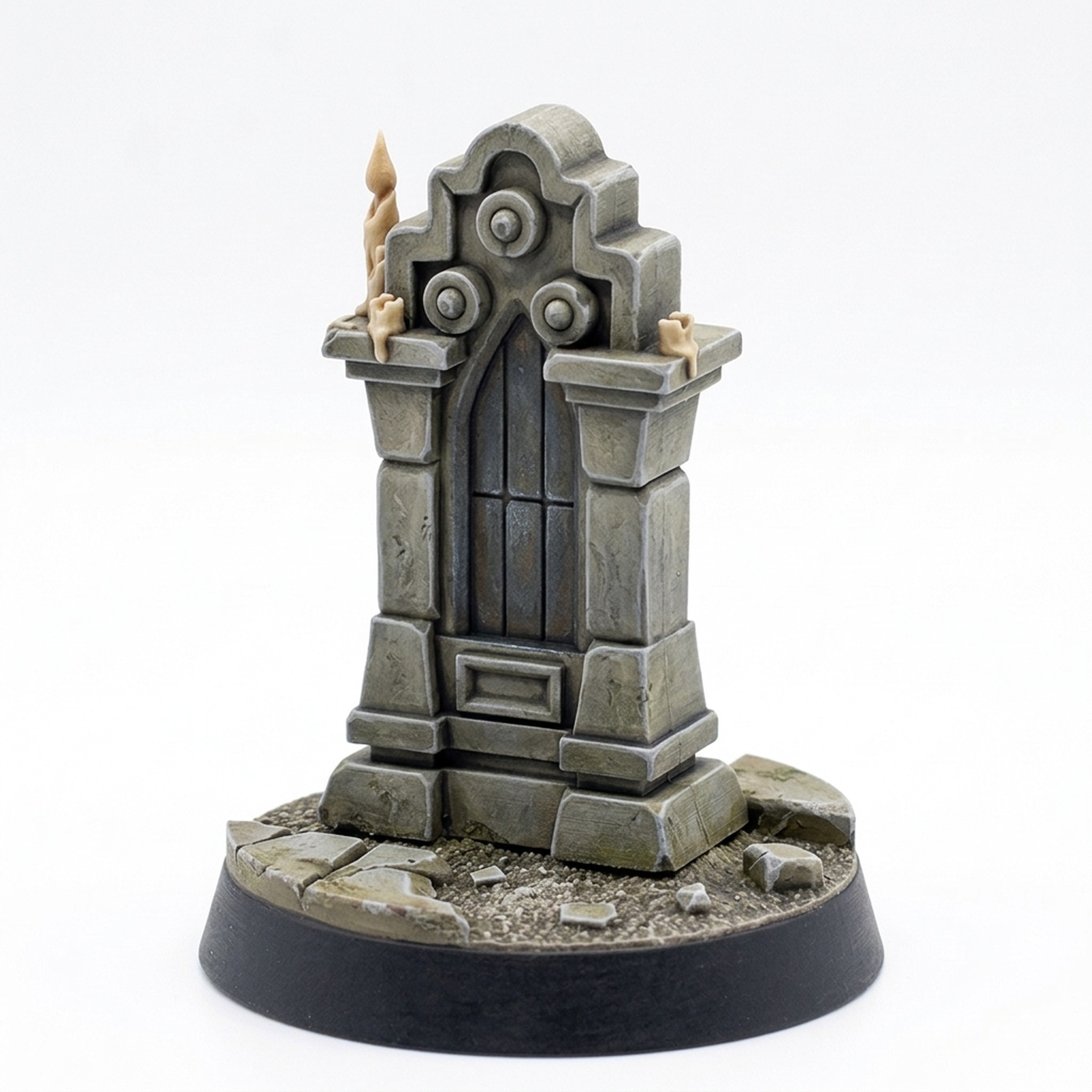 Perfect for Dungeon Masters looking to surprise their party, this miniature combines architectural detail with monstrous horror. The contrast between the rigid stone form and the fluid, organic monster parts makes for a compelling painting challenge and an unforgettable presence on the battlemap. It adds narrative depth and unexpected danger to any graveyard or crypt setting.