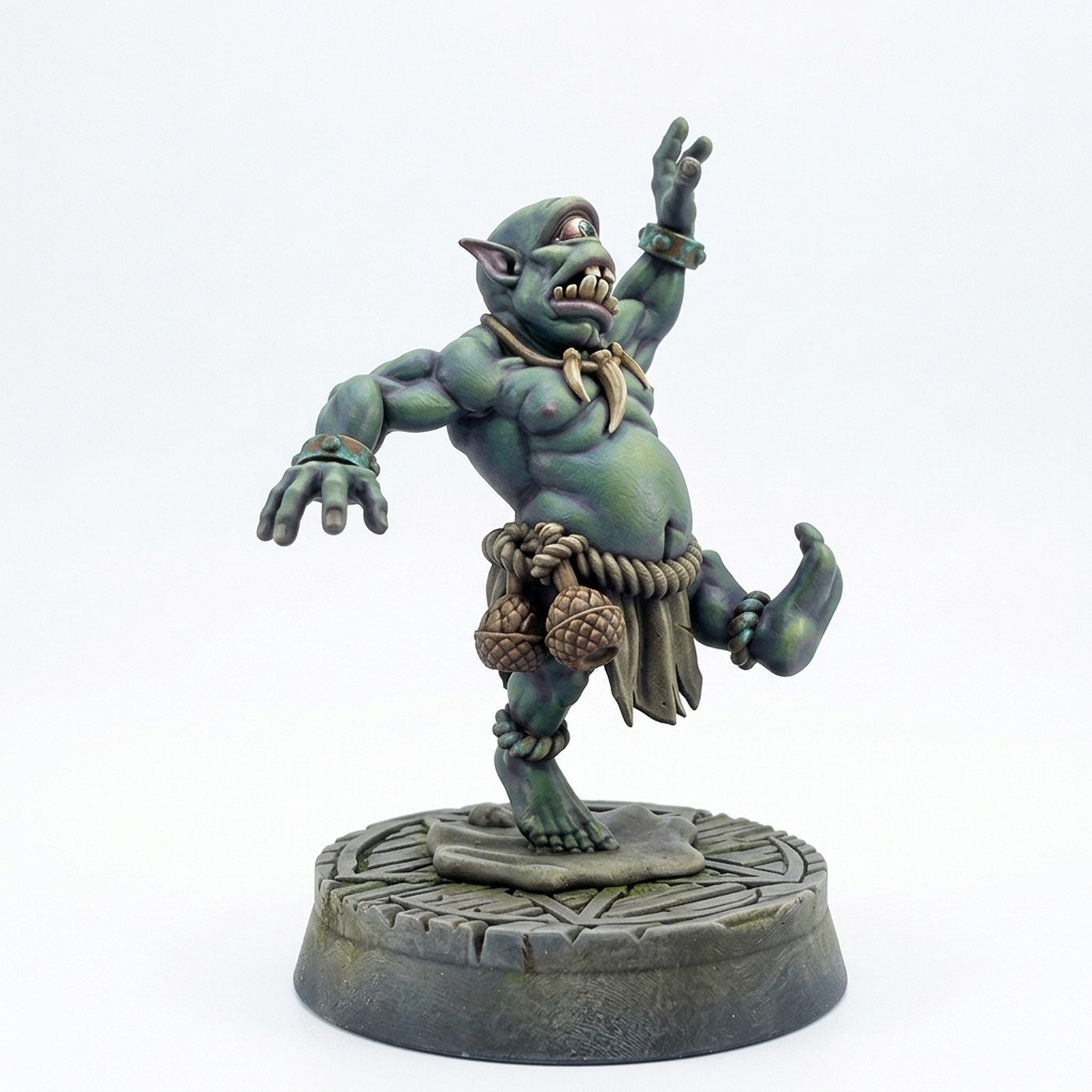 Add a touch of chaos and comedy to your fantasy tabletop games with the Trippping Over Cyclops from CastnPlay's Arcane Order collection. This highly detailed, dynamic miniature captures a comical moment as the large, single-eyed creature clumsily trips forward. The intricate sculpt shows incredible texture on his skin and the tattered loincloth and satchel he wears.
