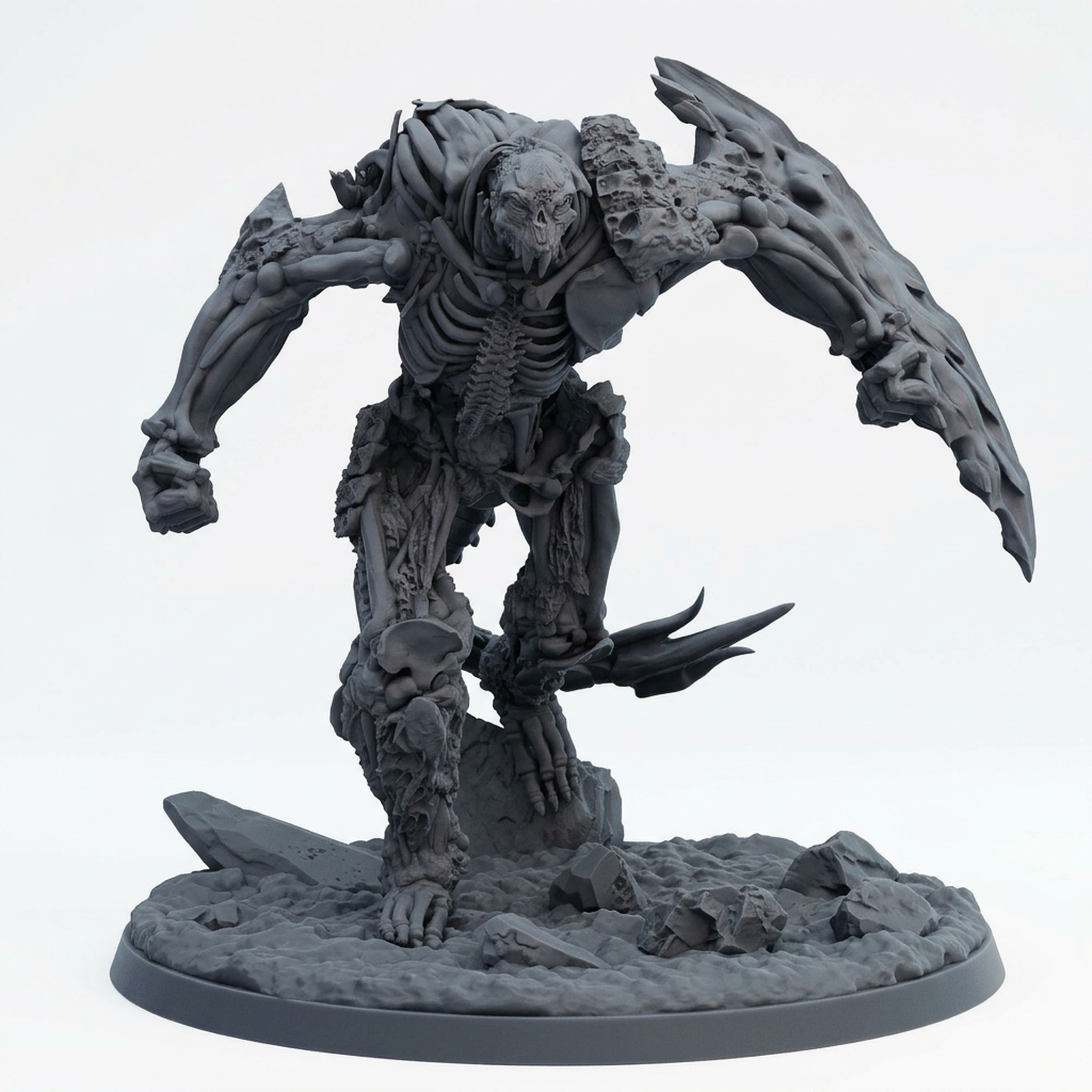 The Bone Colossus 2 is more than just a large monster; it’s a storytelling piece. Its dynamic pose captures it mid-stride, crushing stone and bone beneath its massive feet. Collectors and painters will appreciate the crispness of the sculpt, allowing for advanced techniques like zenithal highlighting, washing, and dry-brushing to bring out the horrifying textures of aged bone, decay, and raw, fused skeletal matter. The model comes supplied with a textured scenic base, adding even more cinematic flair right out of the box. Prepare your players or opponents for a true challenge when this colossus takes the field.