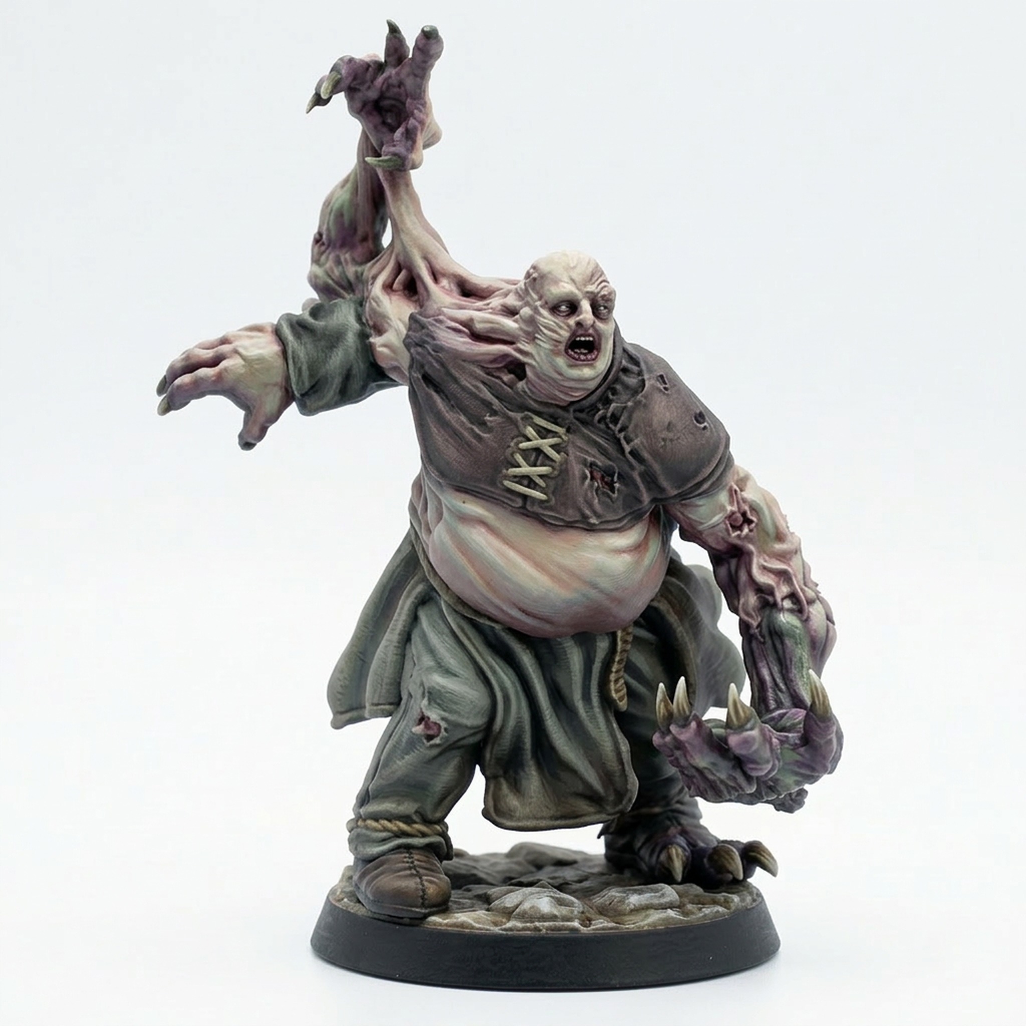 Unleash a truly disturbing horror upon your tabletop with the Fell Wanderer 2 from Mammoth Factory’s Abominable Beasts collection. This grotesque sculpt captures a once-human figure in the throes of a magical or biological curse. Its body is bloated and heavily stitched, with one colossal, mutant limb ending in a wicked claw raised high, and another dragging low. The pained expression and exposed tendons provide fantastic details for painter to really sink their teeth into.
