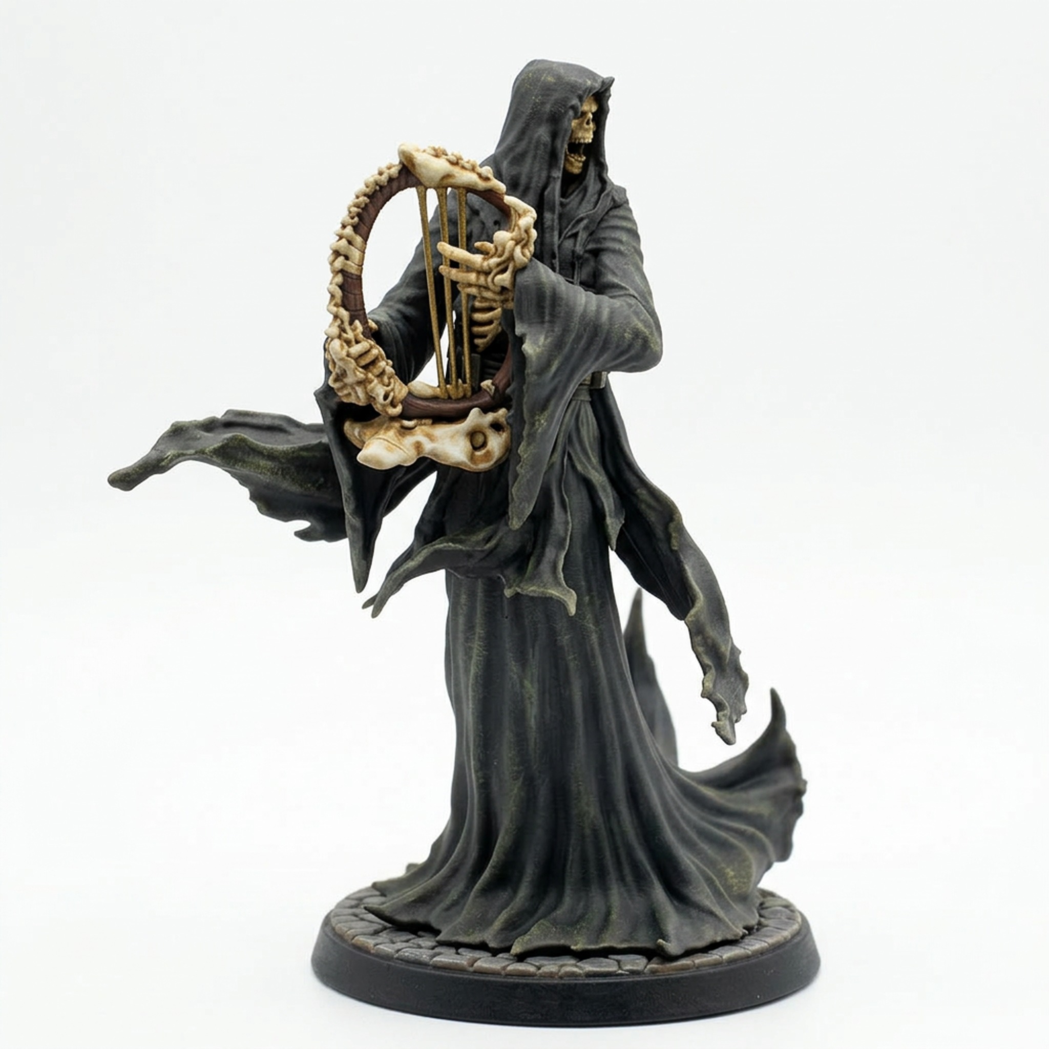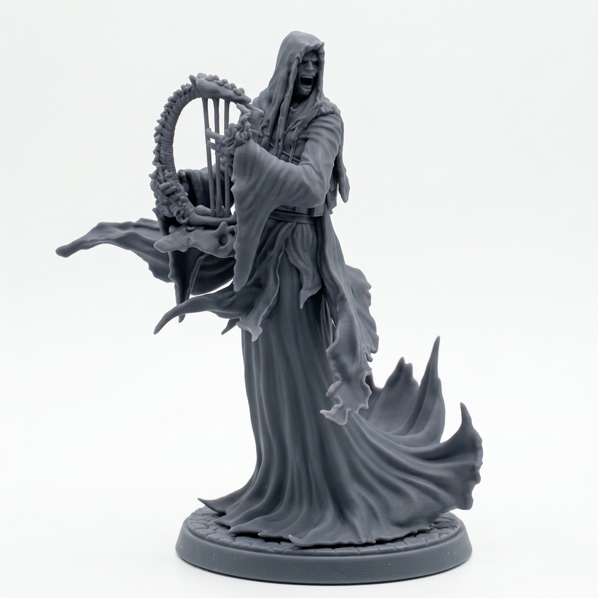 Designed by the talented team at Mammoth Factory, this miniature showcases exceptional detail, from the intricate texture of the rotted robes to the spine-like structure of its musical instrument. It is a dream for painters looking to practice ghost effects, spectral glows, and rotting fabrics. Use it as a powerful undead spellcaster, a cursed bard, or a unique guardian of ancient tombs. This high-quality resin miniature is 3D printed to capture every horrifying detail of the original digital sculpt, ensuring a stunning addition to your collection.