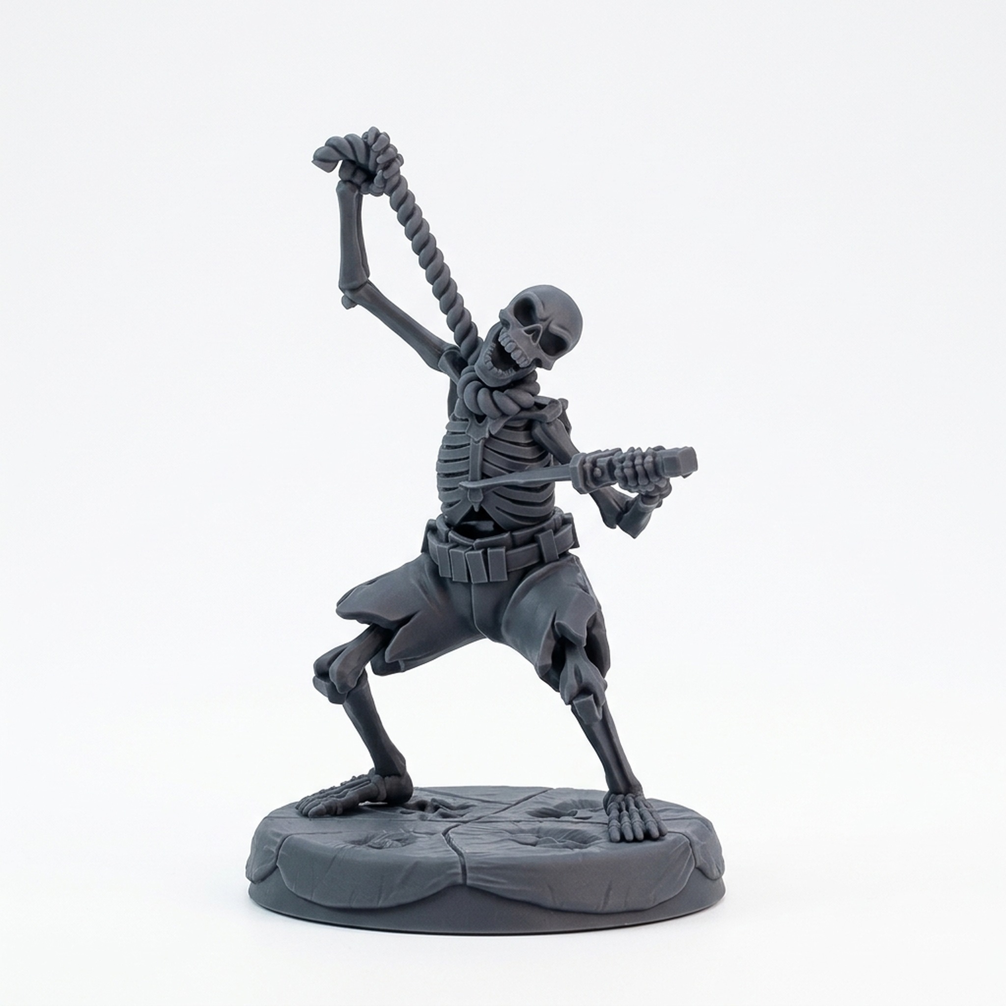 Bring a touch of macabre storytelling to your tabletop with the Hangedman Skeleton, a unique undead miniature from CastnPlay's 'Halloween Season' collection. This highly-detailed sculpt depicts a tragic figure reanimated, still wearing the rope around its neck as a grim reminder of its past. Perfect for undead hordes, haunted encounters, or as a character with a dark backstory.