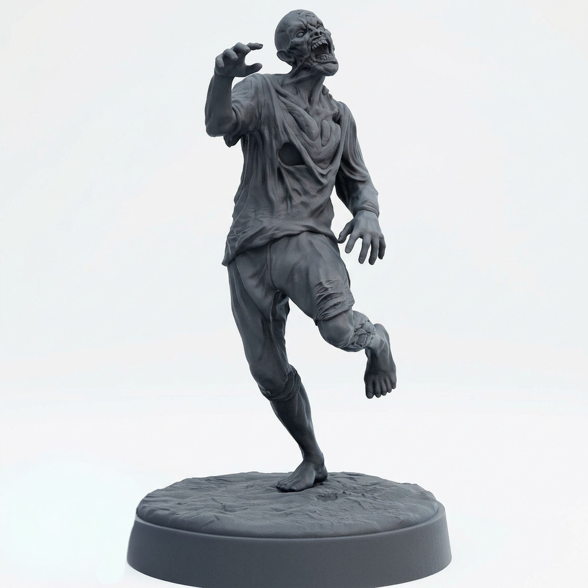 Whether you’re building a massive undead horde for a wargame or populating a single zombie-infested crypt in your roleplaying campaign, this sculpt brings undeniable character and menace to your table. The pose is dynamic yet clumsy, perfectly encapsulating the nature of a mindless, hunger-driven corpse. For painters, the layers of decaying flesh and shredded fabric offer a fantastic canvas to practice weathering, gore effects, and skin tones.