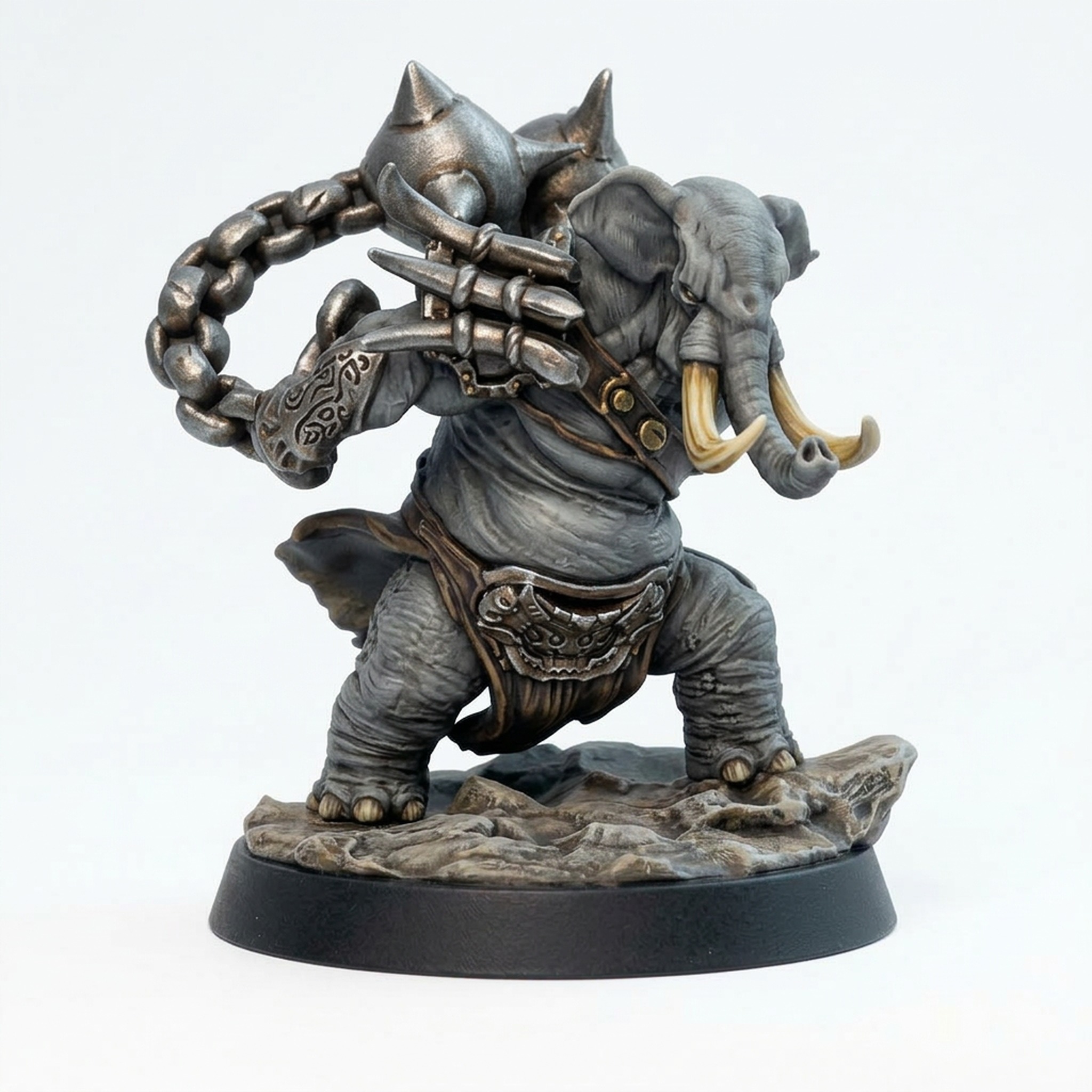 Bring a force of nature to your gaming table with the Elephon Whirler 2 miniature. Designed by Mammoth Factory as part of the Roadside collection, this incredible sculpt captures the power and momentum of a massive elephantine warrior in motion. The intricate details, from the texture of its thick hide and the heavy-duty chains to the menacing expression on its face, are expertly rendered, making it a standout piece for collectors and gamers alike.