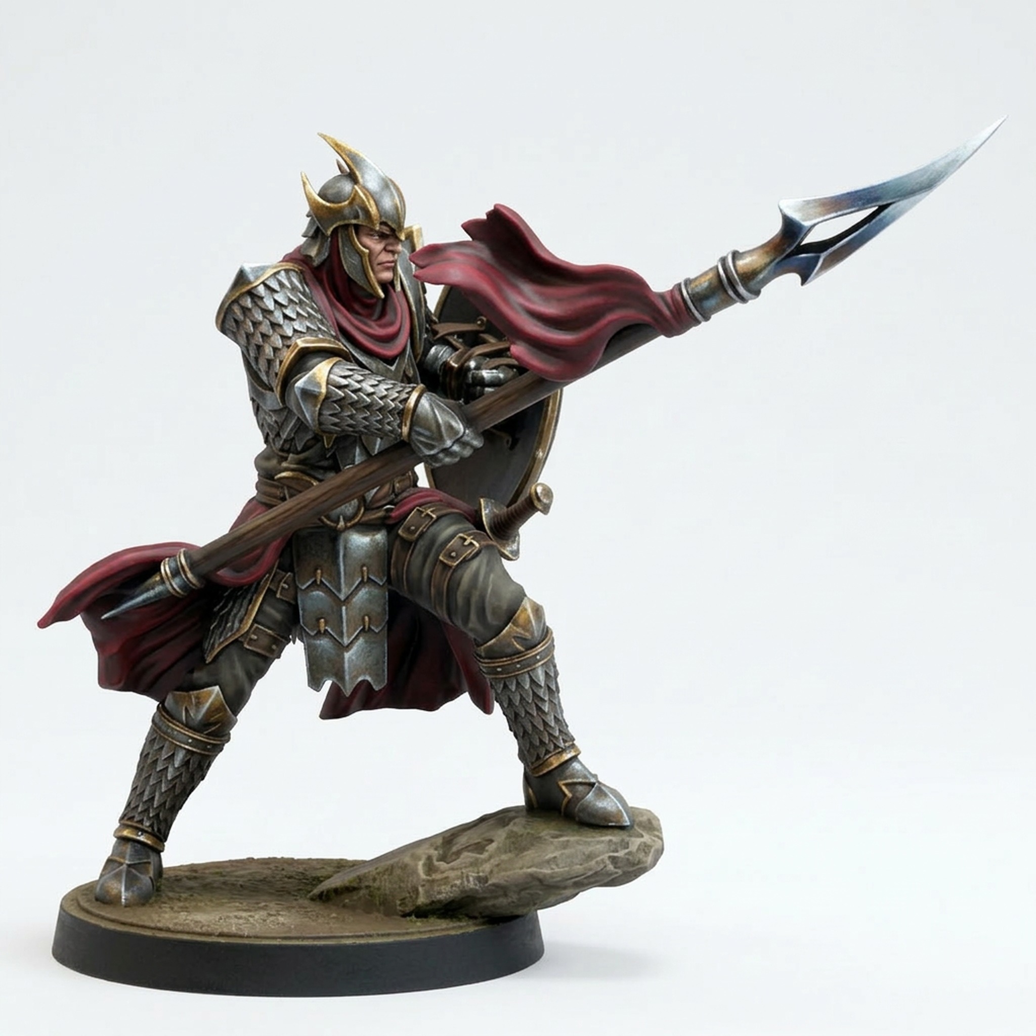 Painters will appreciate the crisp lines and defined surfaces that make showcasing different textures—from metallic armor plates to fabric folds—a rewarding challenge. This miniature is an excellent choice for Dungeons & Dragons, Pathfinder, Warhammer Fantasy, or any other fantasy wargame where disciplined polearm troops are required. This is a high-quality 3D printed resin miniature, delivered unpainted and ready to join your collection.