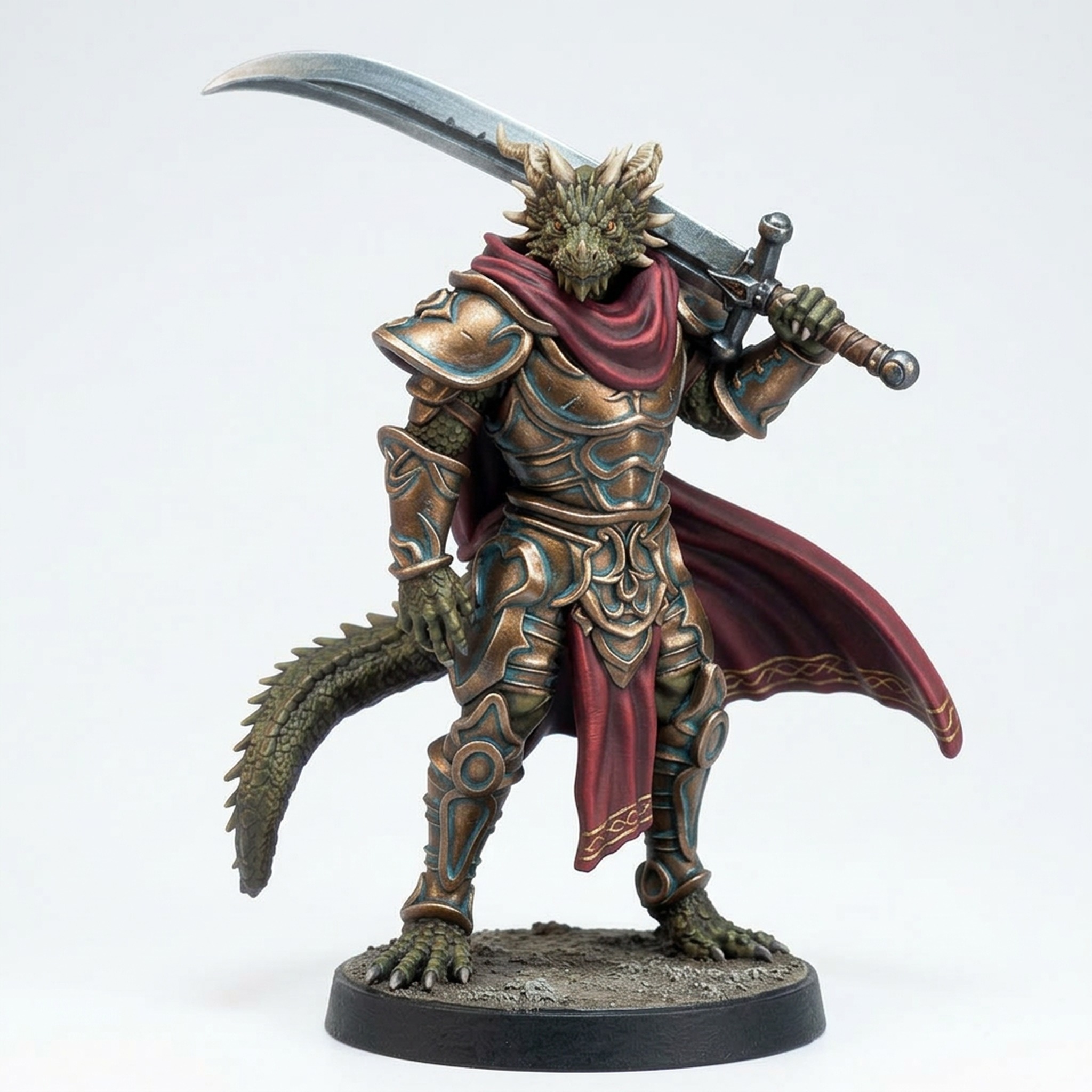 Bring righteous fury to your tabletop battles with the Drakkari Crusader 1 miniature from the acclaimed Solaris Drakarum collection by Mammoth Factory. This heavily-armored dragonborn warrior stands ready for glory, wielding a massive, uniquely-shaped greatsword casually over his shoulder. The sculpt captures incredible character, from the intricate scale patterns on his tail and limbs to the detailed plate armor and flowing cloak. Perfect as a formidable paladin, a stout fighter, or a unique champion in any fantasy wargame or roleplaying campaign.