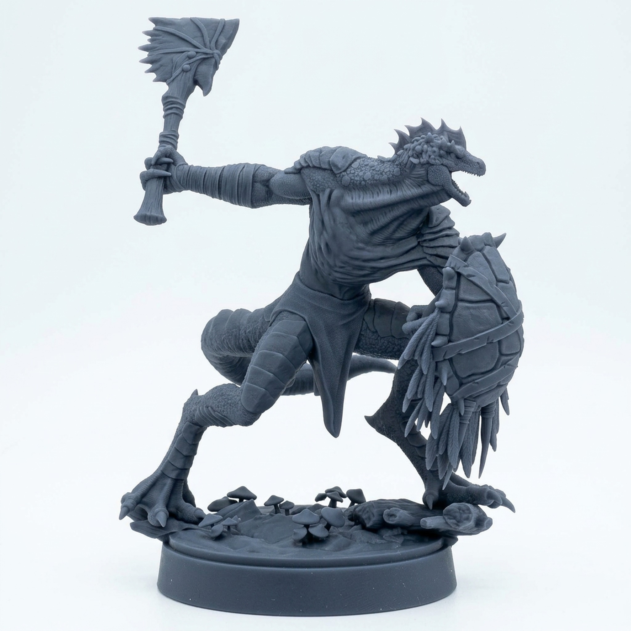 The attention to detail in this sculpt is exceptional. Every scale, the texture of the primitive weapon wraps, and the natural form of the shell shield are rendered with clarity, making it a dream for miniature painters. Whether serving as a ferocious encounter for your players, a unique player character, or a general in your reptilian army, this Saurian Warrior brings unparalleled character and detail to the battlefield.