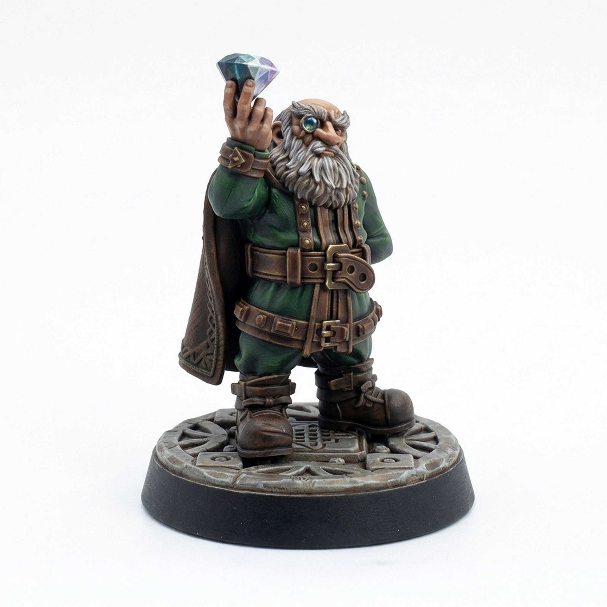 Glander, Dwarven Trader is a distinguished merchant, renowned for his sharp eye and expertise in appraising precious gems and valuables. Standing confidently, Glander holds a large gemstone aloft, inspecting it with his specialized monocle. His neatly groomed beard, detailed attire, and elaborate belt indicate his wealth and status within the dwarven trading community. The miniature captures Glander’s meticulous attention to detail, with his thick belt laden with tools and coins, ready for any transaction. This 3D-printed model is perfect for collectors and tabletop RPG enthusiasts alike. Glander can serve as a crucial NPC in your campaigns, offering adventurers rare goods, valuable trade connections, or even vital information in exchange for treasures. Whether running a dwarven marketplace or negotiating trade deals, Glander, Dwarven Trader brings a sense of wealth, wisdom, and opportunity to your gaming world. His pose and intricate design make him a standout figure for players and collectors looking to enhance their fantasy settings with a shrewd and experienced merchant.
