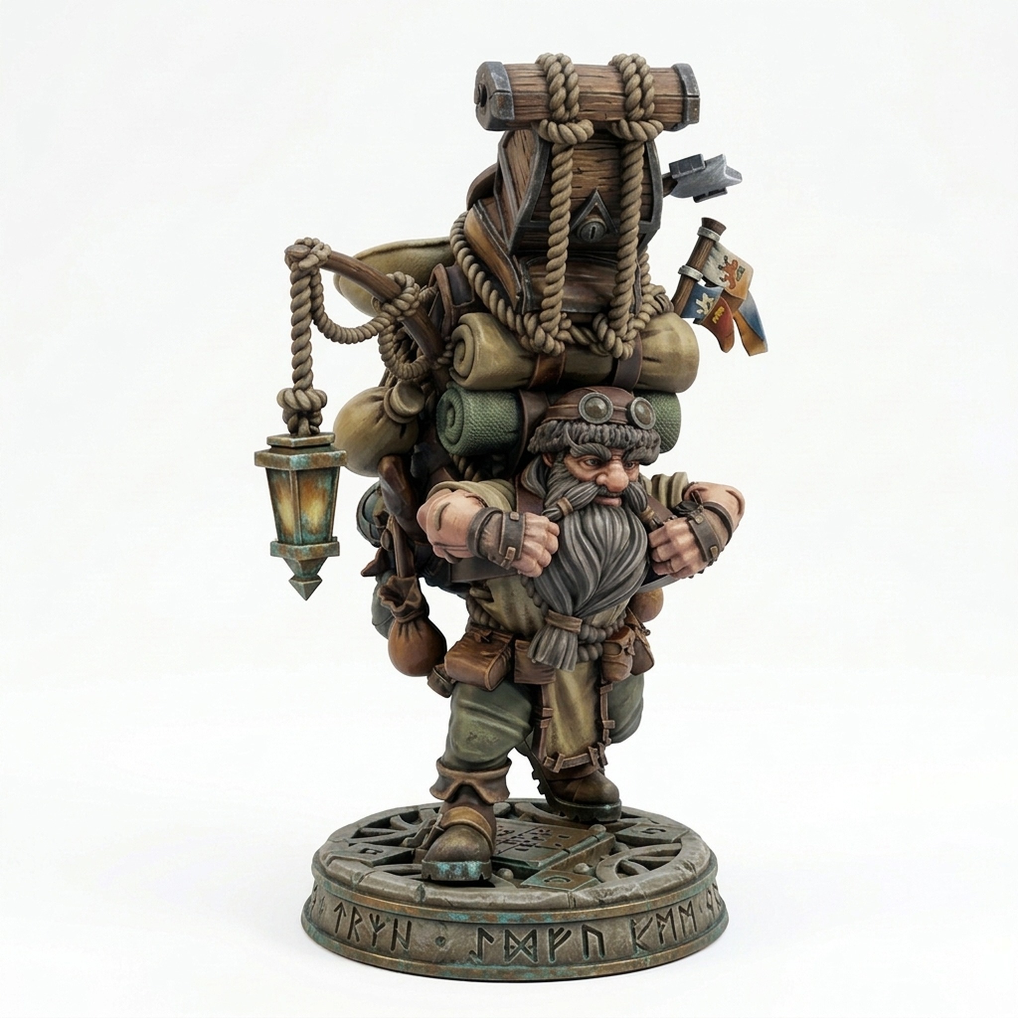 This miniature is a fantastic project for painters, offering numerous textures from aged wood and canvas to detailed leather and metallic armor. The intricate details of his gear and the expressive sculpt bring this weathered adventurer to life, making him a standout piece on any gaming mat. This model is 3D printed in high-quality resin to capture every detail for your tabletop.