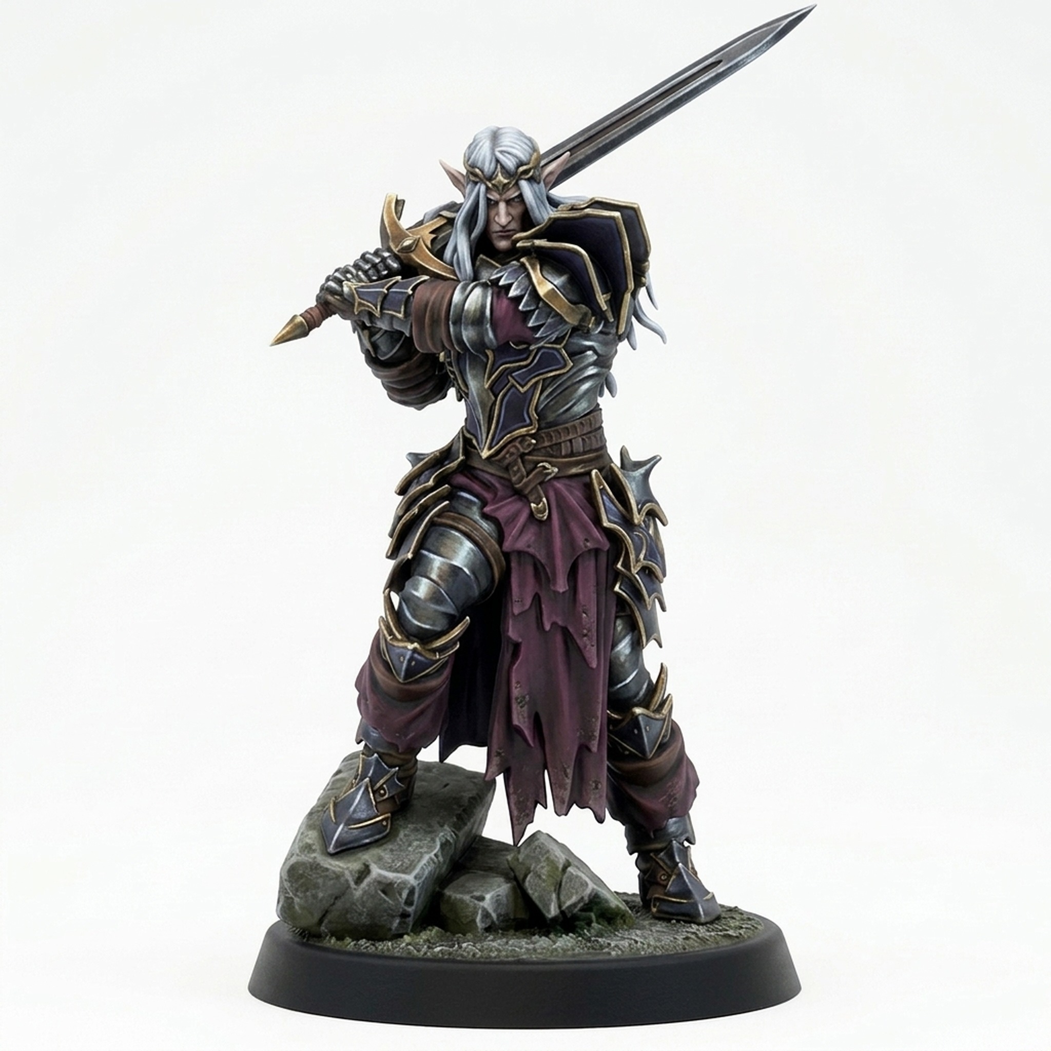 Add a legendary champion to your ranks with the Anvarri Dralfar Knight 2 miniature from the acclaimed Dark Descent Lowtown Collection by Mammoth Factory. This intricately sculpted warrior is captured in a dynamic two-handed sword pose, poised for decisive action on the battlefield. The attention to detail is remarkable, from the ornate plate armor with flowing layered fabric to the detailed weaponry and expressive features under a crown. Whether leading a charge or standing as a powerful player character, this miniature is sure to capture attention at your table.