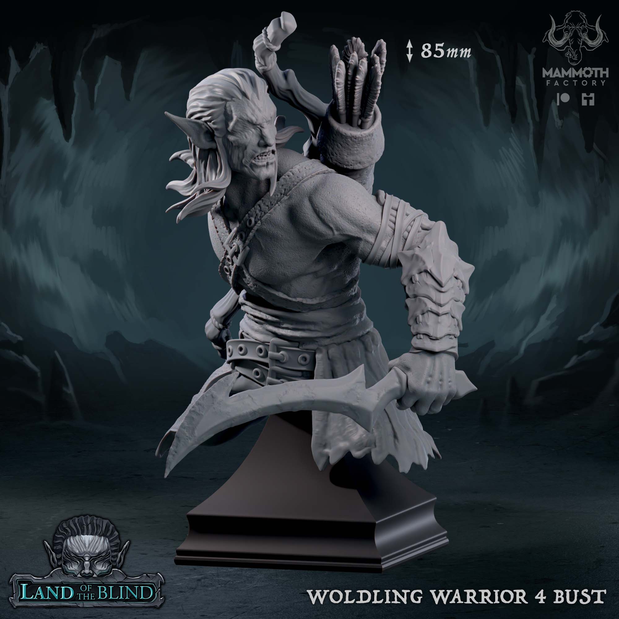 Bring a piece of the wildlands to your display shelf with the imposing BUST Woldling Warrior. Sculpted by the masters at Mammoth Factory for the ‘Land of the Blind’ collection, this high-definition bust captures a moment of pure, primal intensity. This warrior, belonging to the fierce Woldling race, is rendered in stunning detail, from the sharp, elongated elven features to the rugged textures of his bone-and-scale bracers. The flowing hair and snarling expression convey movement and raw energy, perfect for painters looking for a challenge.