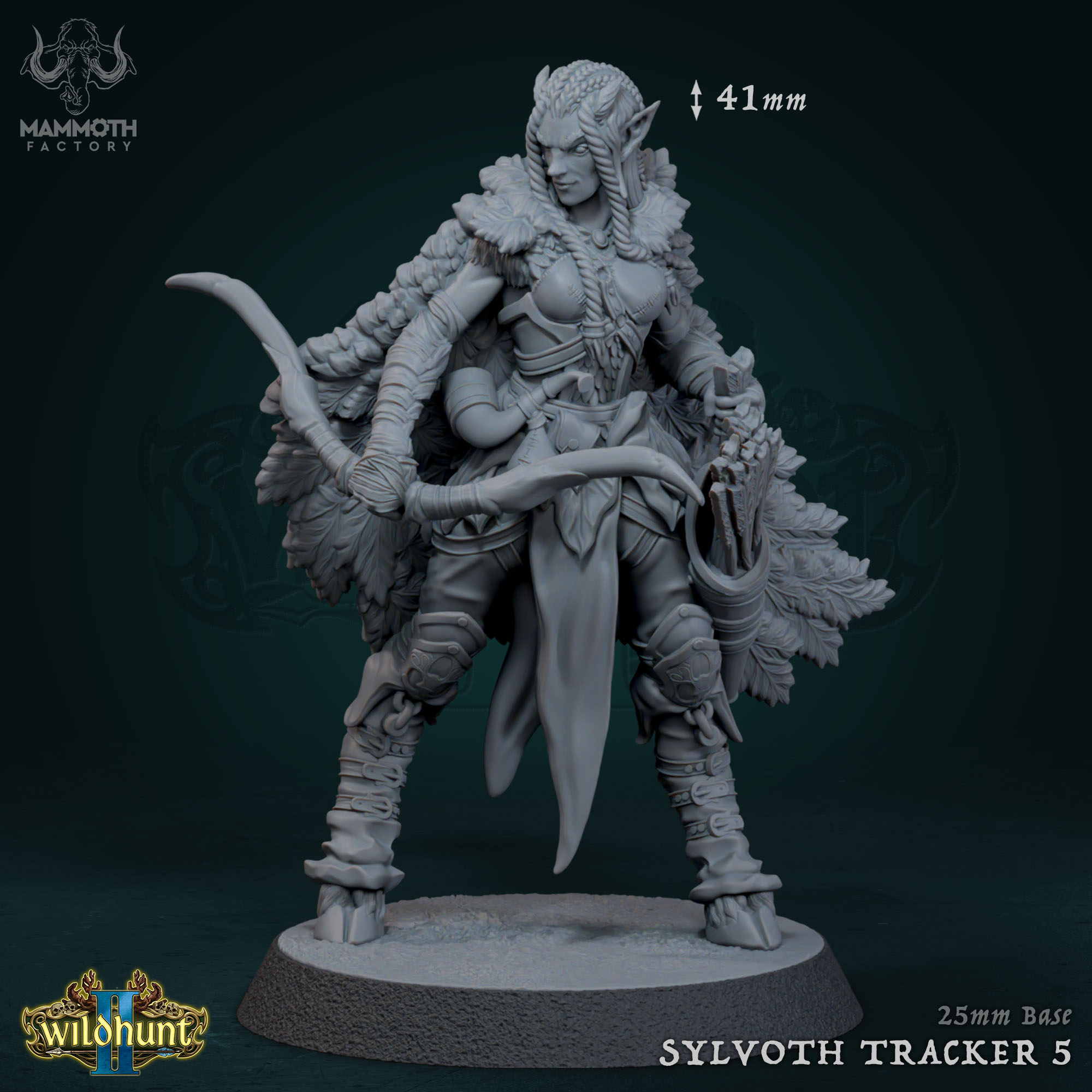 Unleash the spirit of the wild with this incredibly detailed Sylvoth Tracker 5 miniature from the renowned Mammoth Factory. Part of the thrilling Wild Hunt 2 collection, this character sculpt captures the primal intensity of a master woodsman or wood elf ranger. Adorned with a magnificent heavy fur cloak and intricate leather armor, the tracker stands ready with a powerful curved bow in hand. The dynamic pose and sharply defined details, from the braided hair to the rugged greaves, ensure this miniature will be a standout figure on your gaming table or a rewarding challenge for any painter.