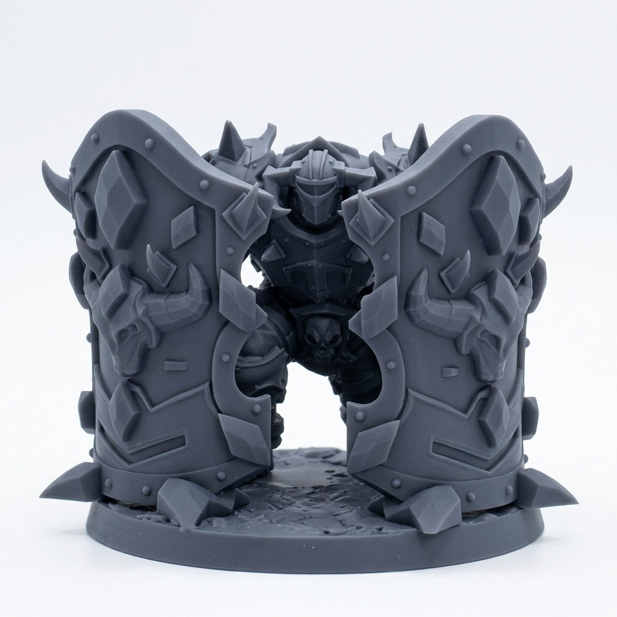 Whether deployed as a resolute guardian in a dark dungeon, a frontline tank in a wargame, or a powerful boss in your next Dungeons & Dragons campaign, this miniature demands respect on the battlefield. Painters will appreciate the mix of large surfaces on the shields and intricate details on the armor and weapons for varied painting techniques. This high-quality 3D printed resin miniature comes unpainted and may require minor assembly, ready to receive your custom paint job and dominate your game nights.
