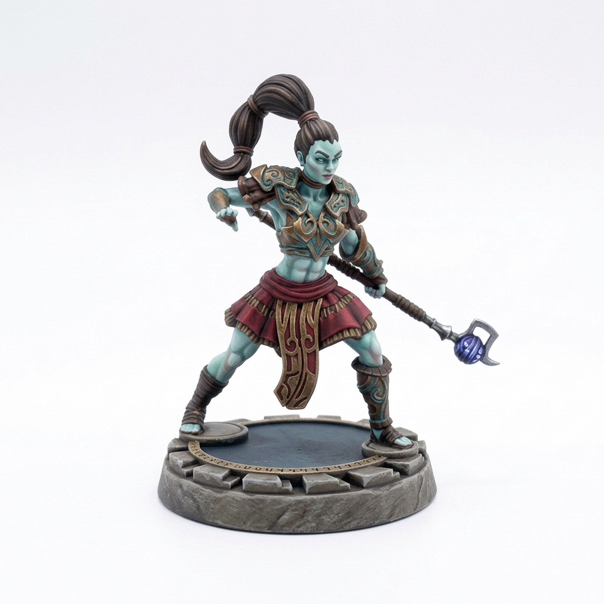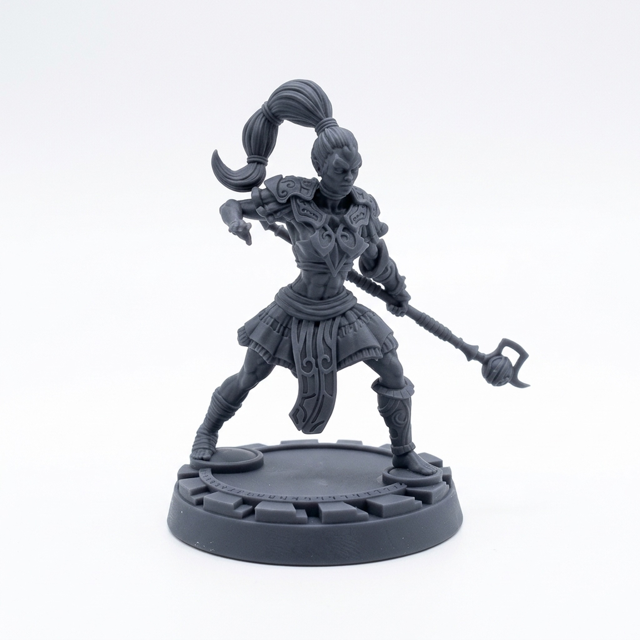 Standing in a low, ready stance on a detailed, runic base, Amazon Sparabar A radiates strength and focus. Every line of muscle and fold of cloth is sharply defined, highlighting the high-quality craftsmanship of the sculpt. Whether she’s a key character in your RPG campaign or a champion in your skirmish warband, this figure brings character and story to the table. This is a high-quality 3D printed resin miniature, offering excellent durability and resolution for enthusiasts.