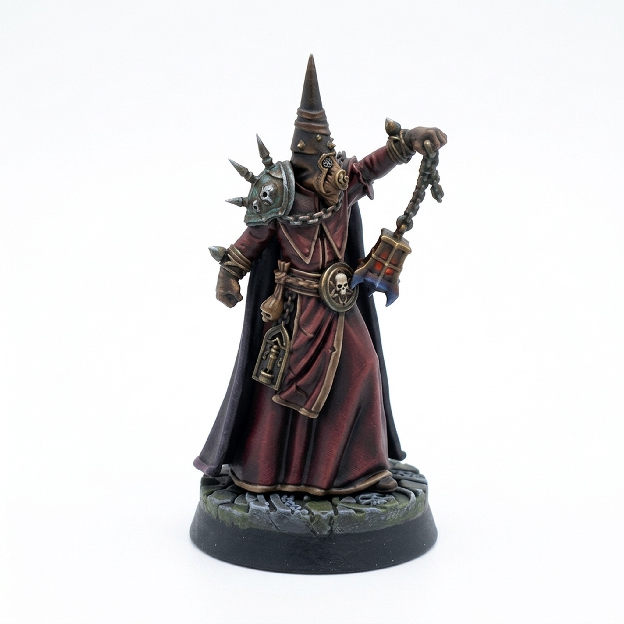 Whether leading a fanatic warband, serving as a dark cleric in a twisted cult, or acting as an inquisitor in a crusade, this miniature brings a unique character and narrative potential to your games. The intricate texture on the flowing fabrics, the solid heft of the heavy armor components, and the chain links of the intimidating weapon are perfectly captured, making it a joy for miniature painters to bring to life. This model perfectly captures the grim atmosphere of a dark fantasy setting like Dungeons & Dragons or Warhammer.