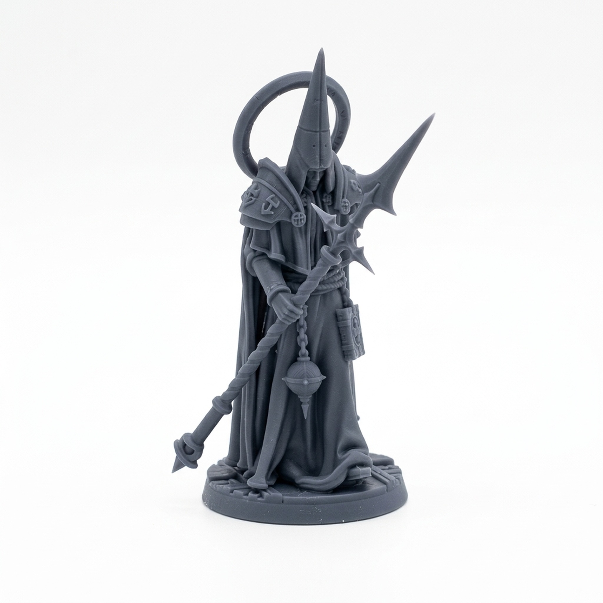 Whether leading a corrupted cult, serving as a powerful warlock or dark cleric NPC, or acting as a high-ranking villain in your next D&D or Pathfinder session, Foulpriest E demands attention and respect. They could be the mastermind behind a sinister ritual, a powerful guardian of a forgotten temple, or the fanatical general of a dark army. With its striking pose and detailed equipment, this miniature is not just a playing piece, but a compelling character story waiting to unfold. It provides a fantastic challenge for hobbyists looking to enhance their collection with a figure that exudes both power and menace. This premium miniature is 3D printed in high-quality resin, ensuring crisp details and a durable finish for both display and intense tabletop play.