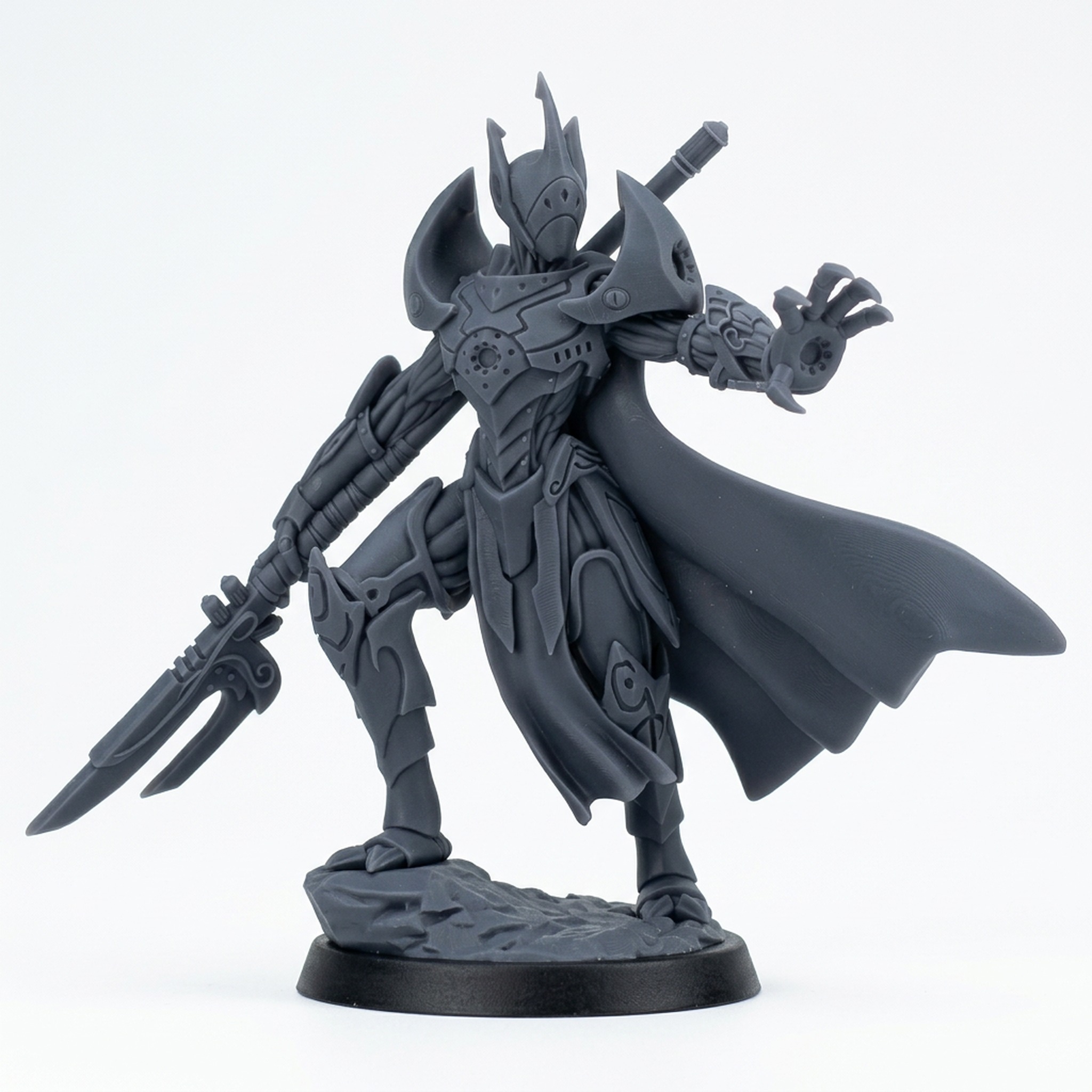 This miniature is 3D printed to a high standard in grey photopolymer resin, ensuring sharp details and an excellent finish that captures the intricacies of the digital sculpt. Ships unpainted and may require some assembly. The included base fits on a standard 25mm battle map grid.