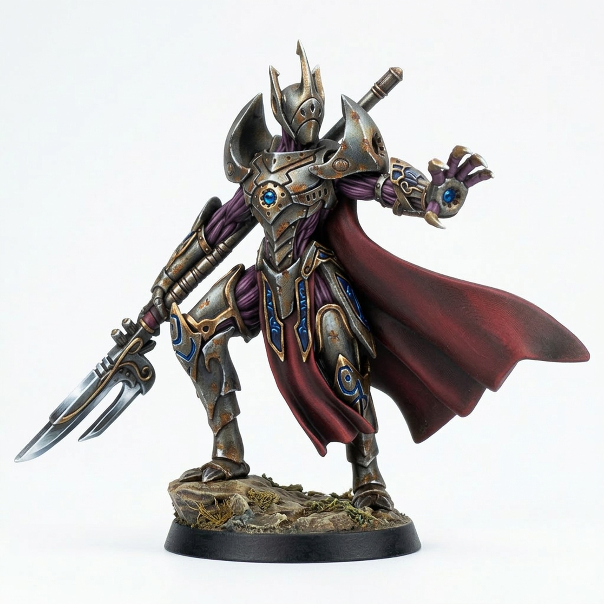 Whether you see this figure as a mysterious planar traveler, a high-ranking member of a forgotten order, or a formidable sorcerer-knight, the Hand Of Logos is a perfect centerpiece for your next campaign. The multi-layered design offers an exciting challenge for miniature painters, with opportunities to highlight the sharp edges of the armor against the soft texture of the cloak and the intricate patterns of the arcane details. It stands on a themed scenic base representing broken stone ruins, ready to join the battle.
