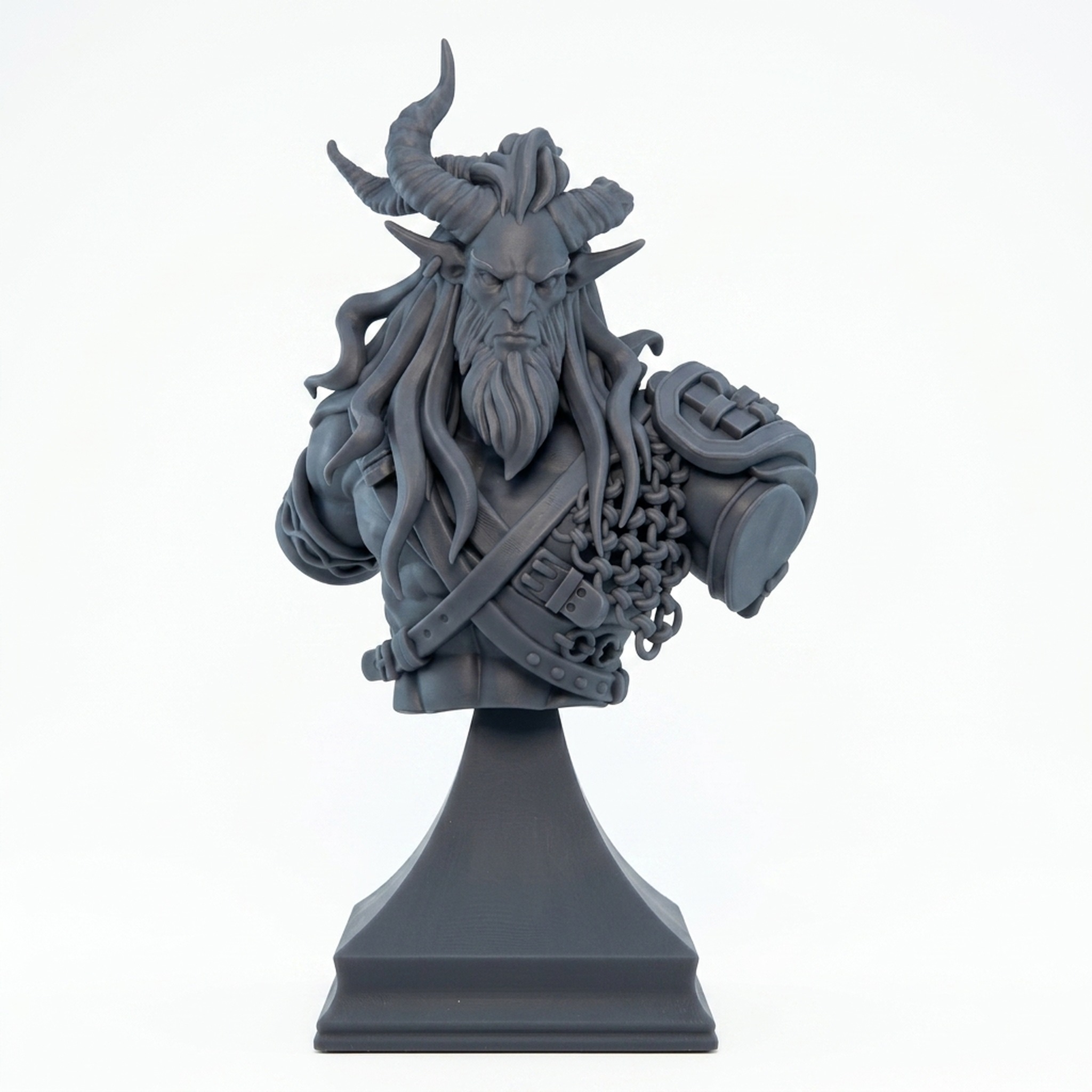 Jhago Half Beast Fighter 2 is a stunningly detailed miniature, meticulously sculpted by Mammoth Factory. Part of the Dark Descent Lowtown Collection, this bust captures the raw power and determination of the half-beast warrior. Every detail, from the textured fur to the scarred armor, is rendered with exceptional clarity. The dynamic pose and fierce expression make it a standout piece for any collector or tabletop enthusiast.