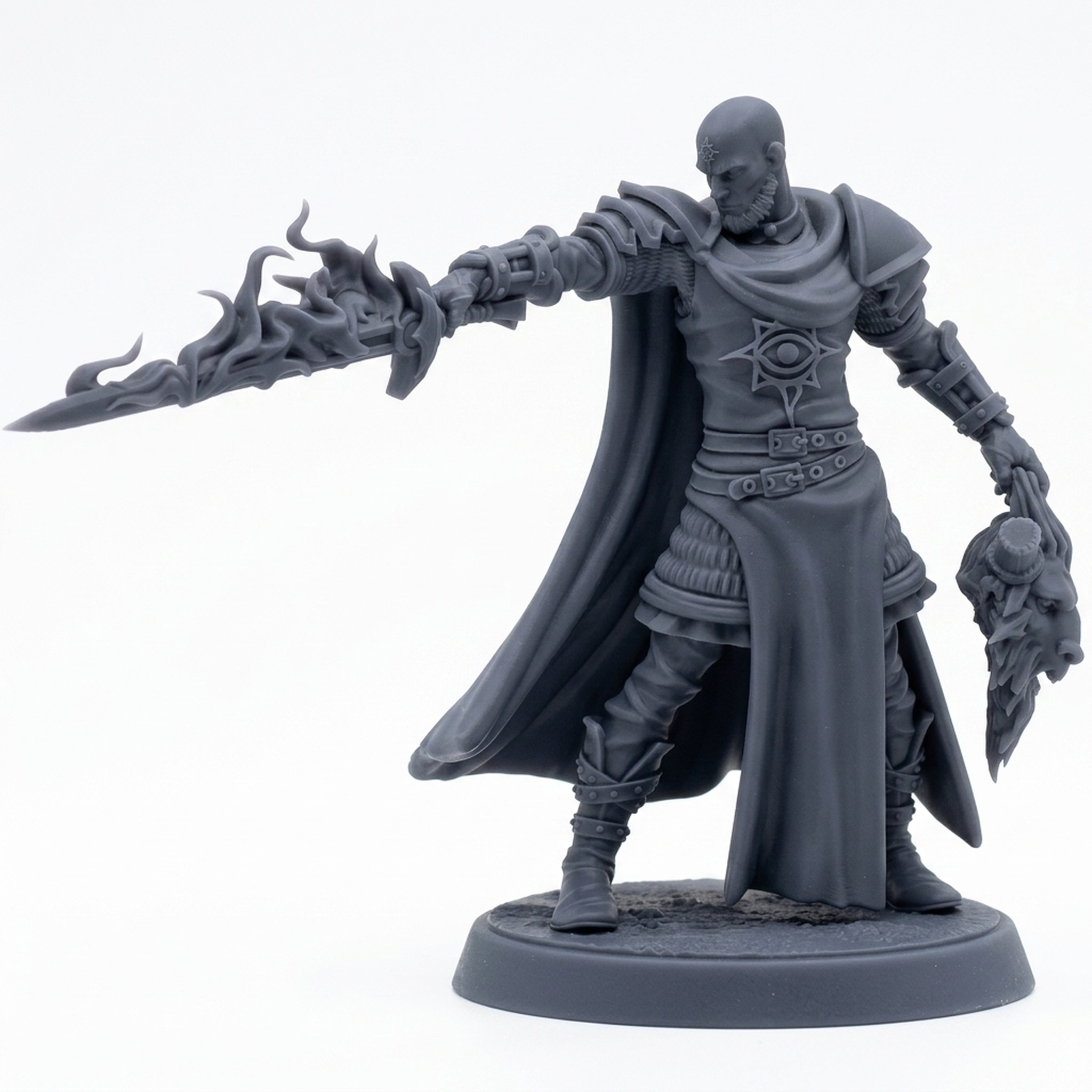 This miniature is a testament to quality craftsmanship. Every element, from the texture of the layered leather and steel armor to the complex magic effect on the blade and the grittiness of the severed head, has been sculpted with precision. This level of detail makes Luel a dream for miniature painters, offering countless opportunities for highlighting and weathering. On the gaming table, he will command attention, serving as an ideal player character, powerful NPC, or formidable antagonist.
