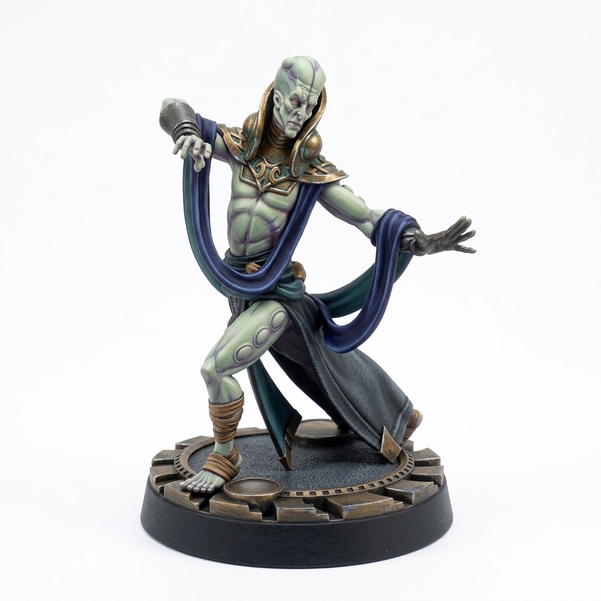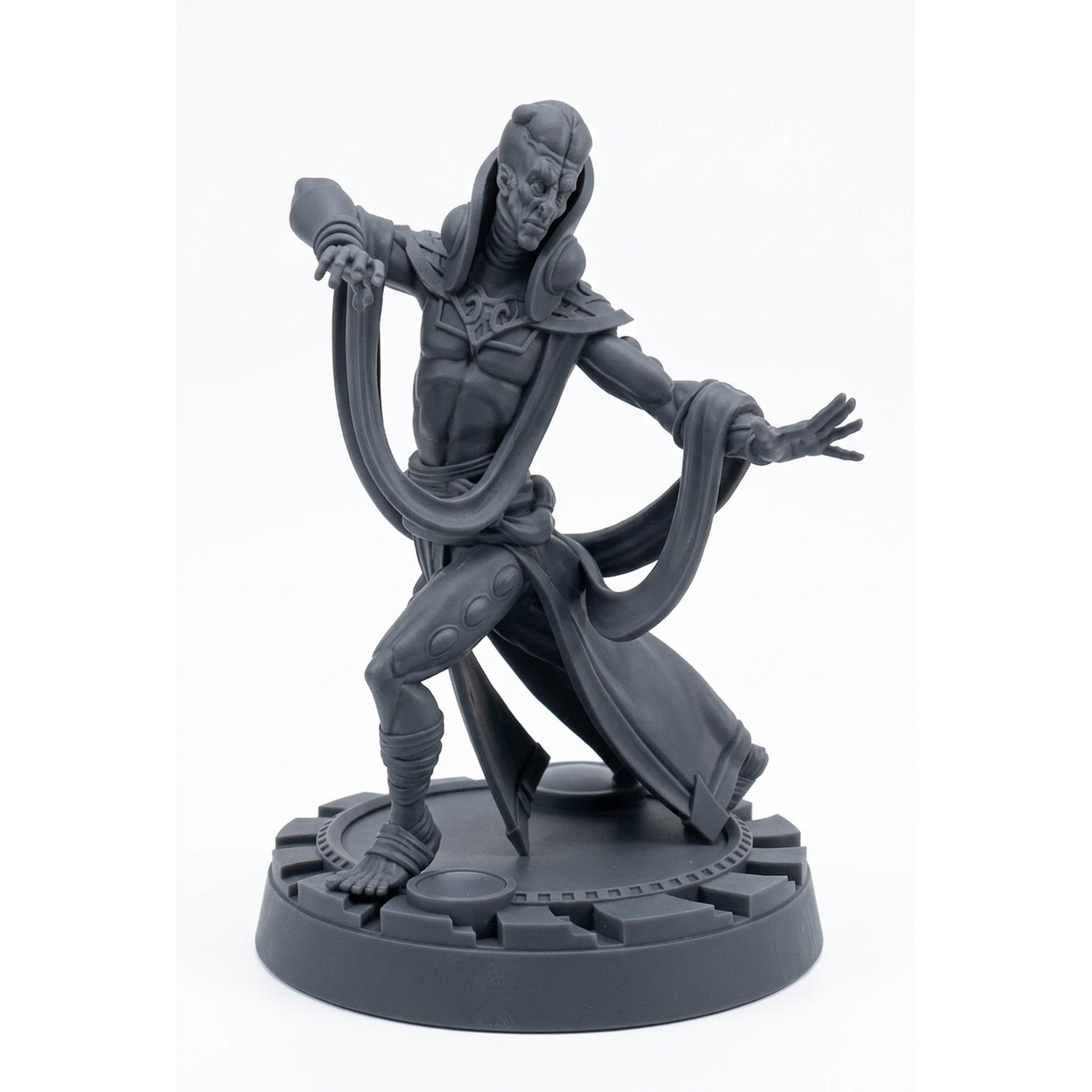 Unleash arcane power on your tabletop with the Magus Aethernal A miniature, a striking figure from CastnPlay's acclaimed Aethernals collection. This masterfully sculpted wizard model captures the essence of an otherworldly spellcaster, perfect for serving as a powerful Wizard, Sorcerer, or Warlock in your next Dungeons & Dragons campaign, Pathfinder game, or any fantasy wargame. The miniature's dynamic pose, flowing robes, and intricate details—from the energy orb he manipulates to his stylized mechanical base—offer an exceptional canvas for painters and a formidable presence for players. This high-quality 3D printed resin miniature brings unique character and fine-sculpted precision to your collection.