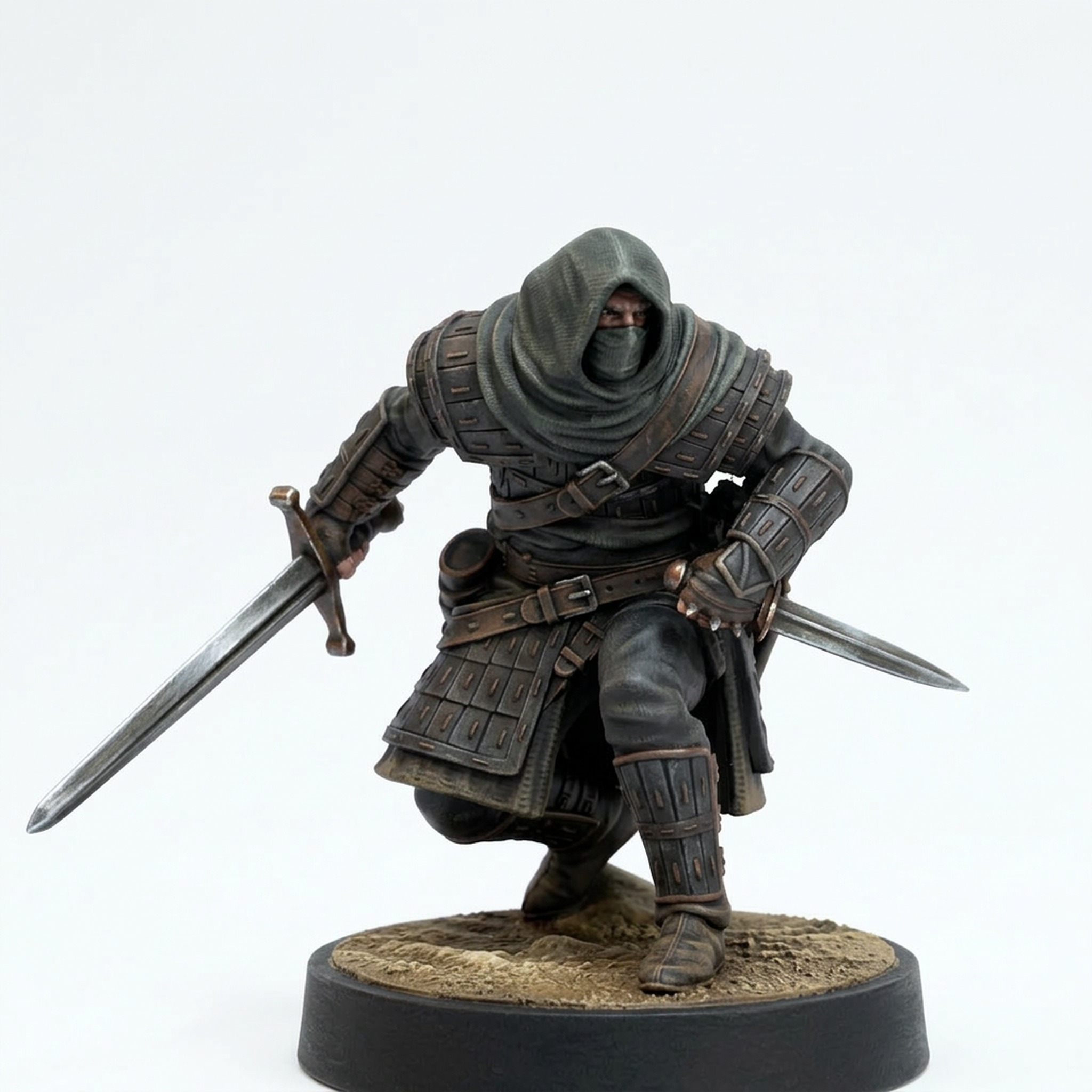 Whether this model serves as a specialized character, a high-value target, or a dangerous boss in your DnD campaign, the quality of the sculpt ensures it will stand out. Miniature painters will appreciate the distinct textures on the armor plates, the flowing cloth of the hood, and the sharp lines of the weapons, making it a rewarding project to bring to life. This miniature is meticulously produced via high-quality 3D printing in durable, fine-detail resin, preserving every detail for an exceptional hobby experience.