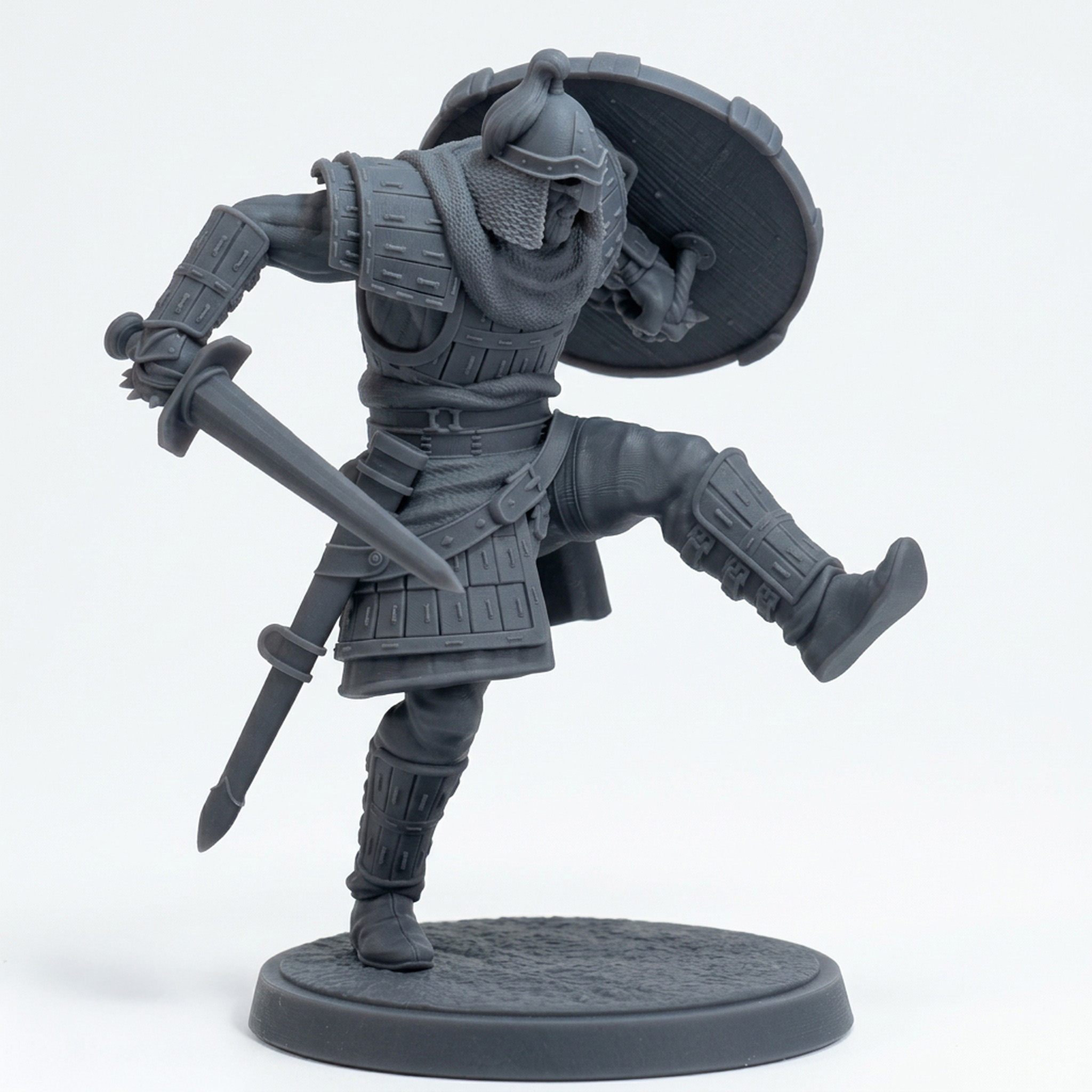 Bring dynamic action to your tabletop with the Oathsworn Blade 2, a stunning 3D printed miniature from Mammoth Factory’s DeepHold collection. This highly detailed model captures a warrior mid-charge, delivering a powerful kick while brandishing a sword and shield. The intricate lamellar armor, chainmail texture, and weathered shield make this miniature a true standout, showcasing the exceptional sculpt quality and character that Mammoth Factory is known for.