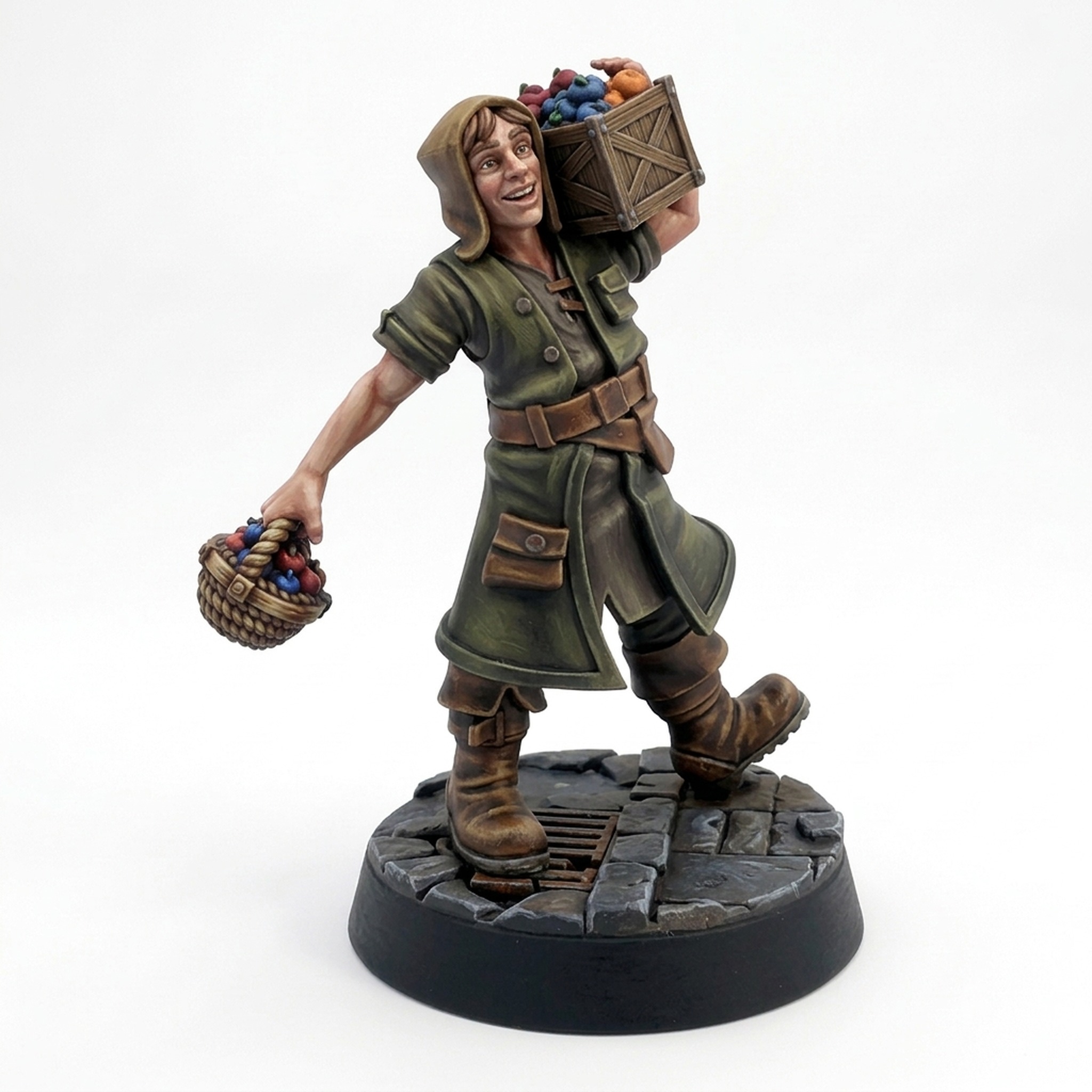 Add life to your market scene with Ulmar, a detailed townsman carrying fresh produce.