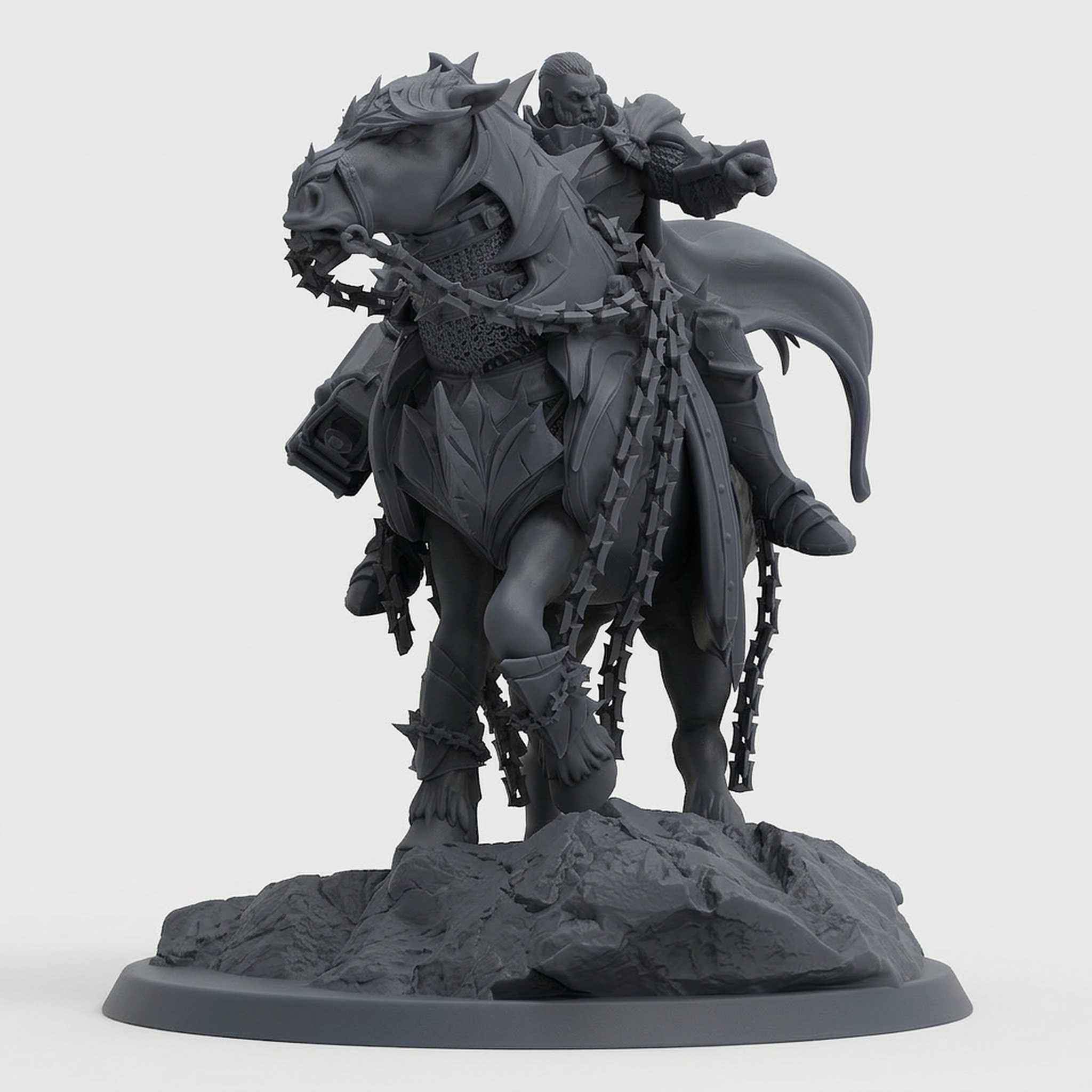 This is a high-quality 3D printed miniature, produced in durable resin to capture all the intricate sculpt details. It arrives unpainted, ready for you to customize for your own world-building. Add this Unchainedhorse Stand Mount to your collection and watch it dominate your game board!