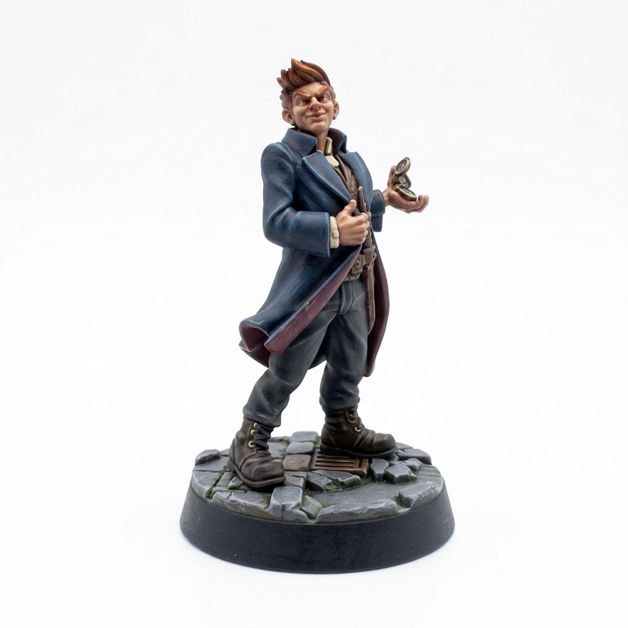 Xandras Testing Luck is a charismatic and daring rogue, depicted in the middle of tossing a coin, his expression full of confidence and charm. Dressed in a long coat that billows as he moves, Xandras looks every bit the opportunist, always ready to test his fortune, whether at a gambling table or in the middle of a dangerous deal. His sharp gaze and sly grin suggest he’s accustomed to risk, living by the thrill of chance. This finely detailed 3D-printed miniature captures the nuances of his confident posture and meticulous attire, from his well-tailored coat to the casual way he holds a coin, as if luck itself is always on his side. Xandras is perfect for playing a cunning rogue, daring gambler, or a quick-witted NPC in any tabletop setting. His detailed design offers plenty of customization opportunities for painting, allowing you to bring this slick and dashing character to life in your game. Whether he’s outsmarting foes or striking it rich, Xandras Testing Luck will add a bold and adventurous spirit to any campaign.