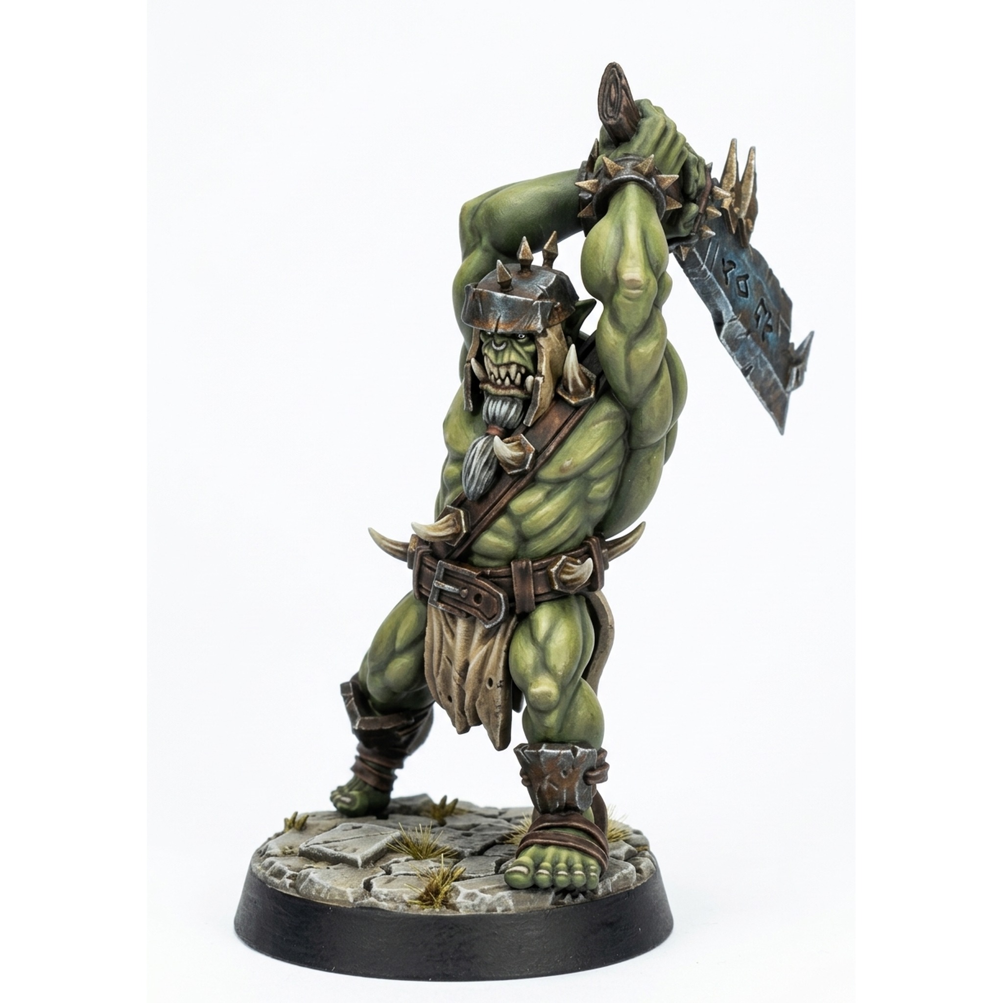 Bring brutal power to your tabletop games with Body Choppers E, a formidable Orc warrior from the acclaimed Iron Skull Orcs collection by CastnPlay. This highly detailed miniature captures a hulking Orc in a dynamic, aggressive pose, raising a massive, two-handed greataxe high above his head for a devastating downward strike. He is clad in piecemeal armor with spikes and jagged edges, reflecting the savage culture of his kind. The muscular sculpt features intricate details on the muscles, clothing, and weapon, making it a dream for miniature painters.
