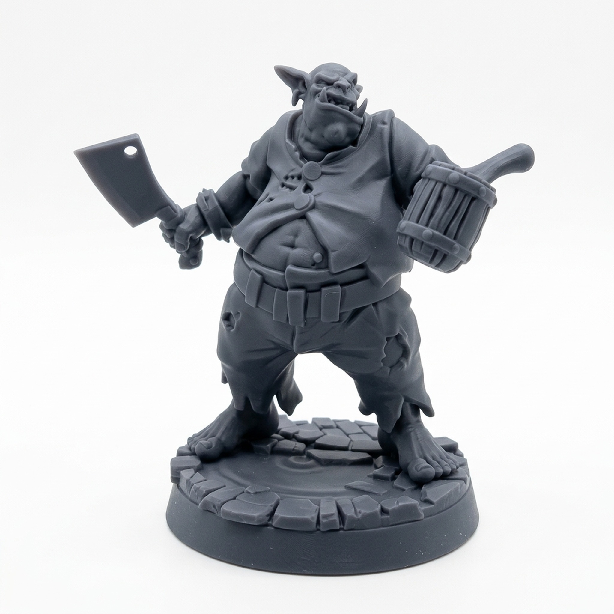 The intricate details in this high-quality 3D printed resin miniature make it a joy to paint and a standout on the tabletop. From the worn textures of his clothes to the froth on his beer, every element tells a story of a boisterous life in Mennesker City. This unique sculpt captures a fun and playable NPC or an unexpected player character.