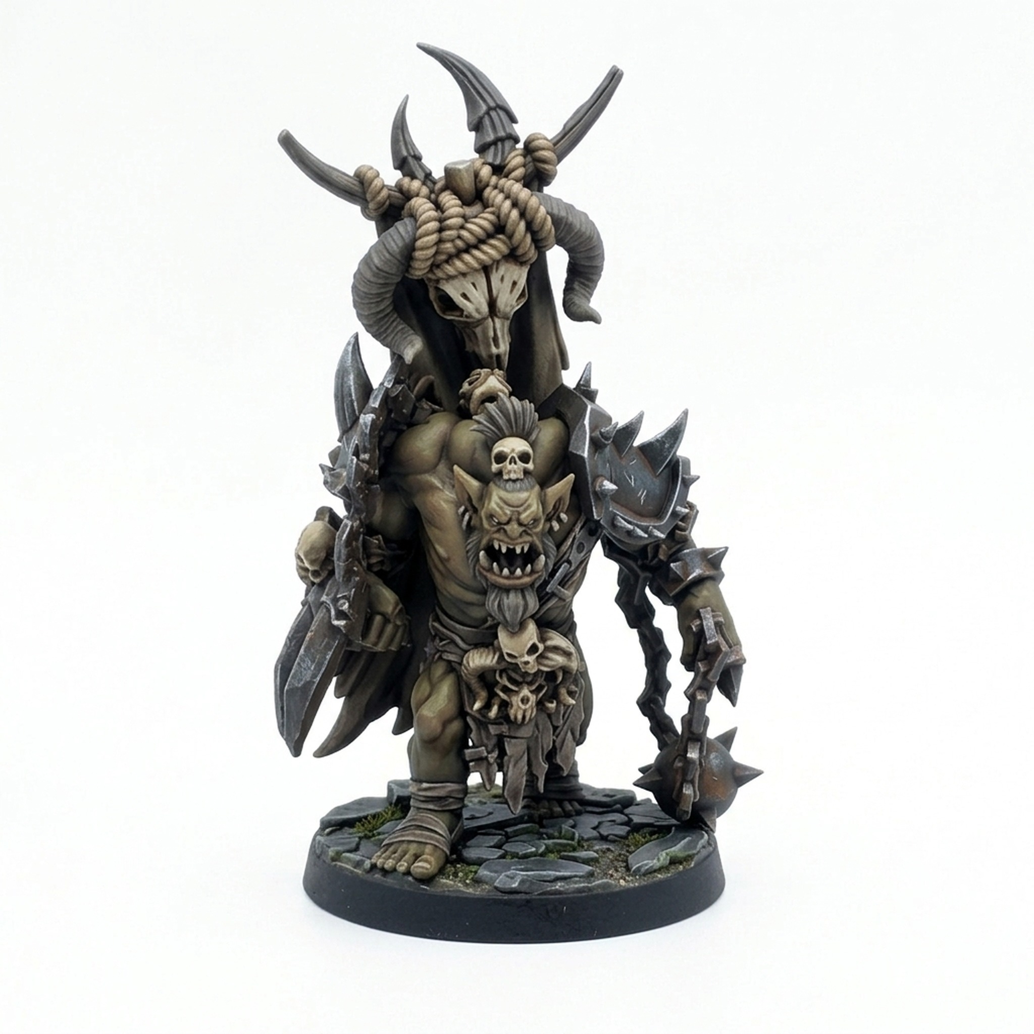 Bring the raw power of the Iron Skull tribe to your tabletop with Grakha Uzkor A, a fearsome Orc warrior expertly sculpted by CastnPlay. This miniature captures a brutal warrior in mid-action, wielding a spiked club and a massive back-mounted trophy skull standard. Clad in heavy, crude armor and adorned with skulls, Grakha Uzkor A embodies the ruthless spirit of his kind. The level of detail from the tattered banner to the ferocious expression on his face makes this a standout piece for any collection.