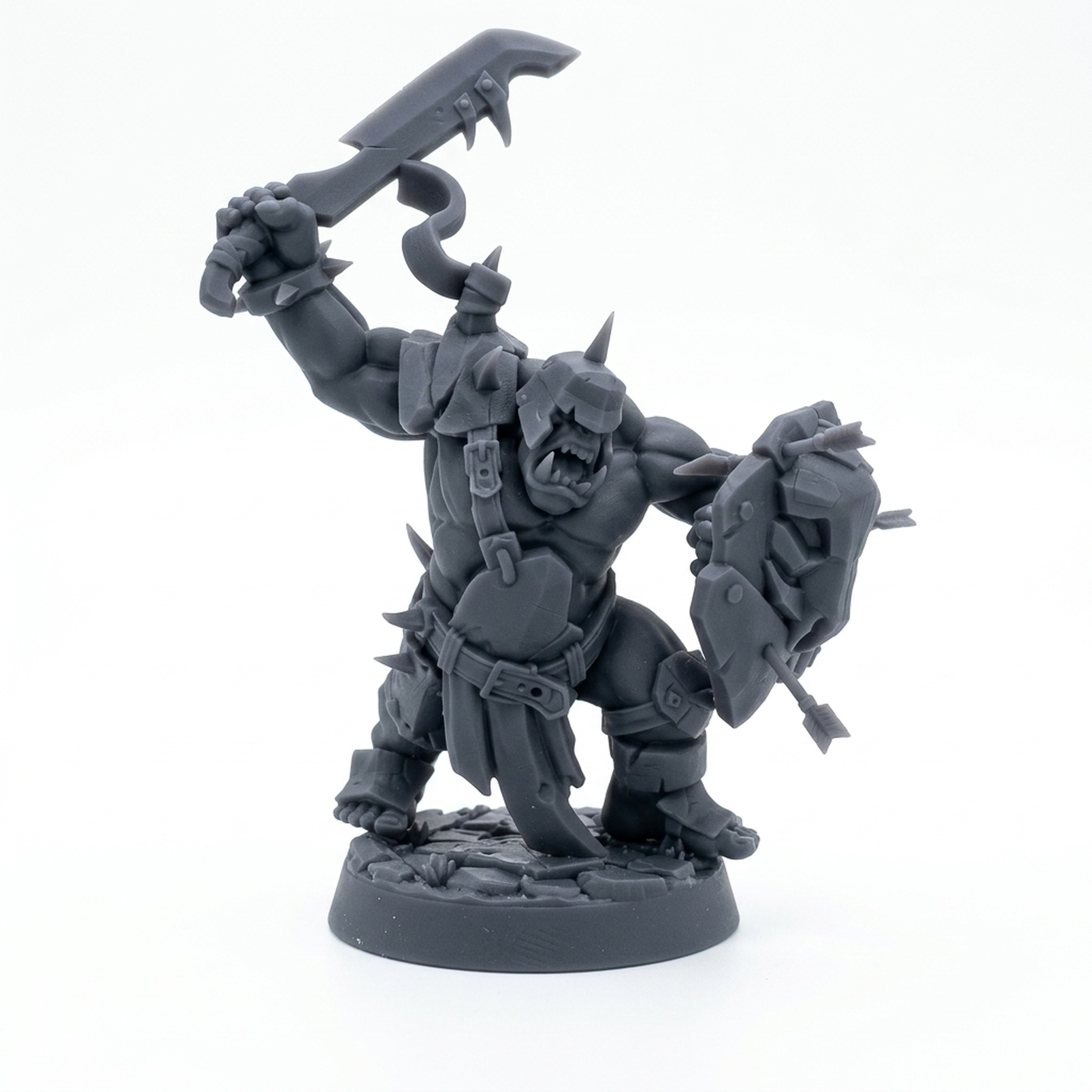 Crafted with incredible attention to detail, this miniature is a dream for both painters and players. From the rugged texture of the hammered metal armor to the jagged edge of the oversized blade and the battle scars on the shield, every element is designed to stand out on the tabletop. The expressive face beneath the horned helmet adds character to your army. Whether you're building a massive warband for wargaming or seeking a formidable foe for your next D&D campaign, this orc grunt delivers.