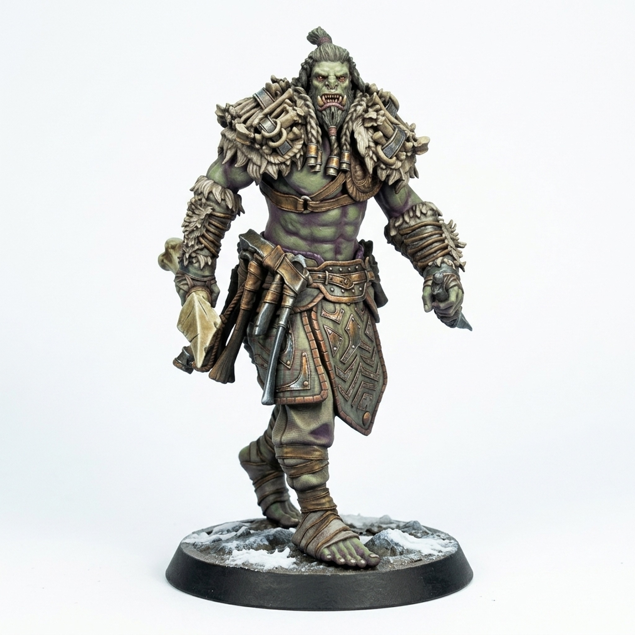 Introduce the ruthless Orcsoldier Daggerwalk from the renowned Northern Orcs collection by Rescale Miniatures. This 3D printed miniature captures the raw power and savage determination of an orc fighter stepping forward into battle. With intricate details on his armor, a determined expression on his face, and his trademark daggers drawn, this miniature is ready to bring brutal action to your tabletop games.