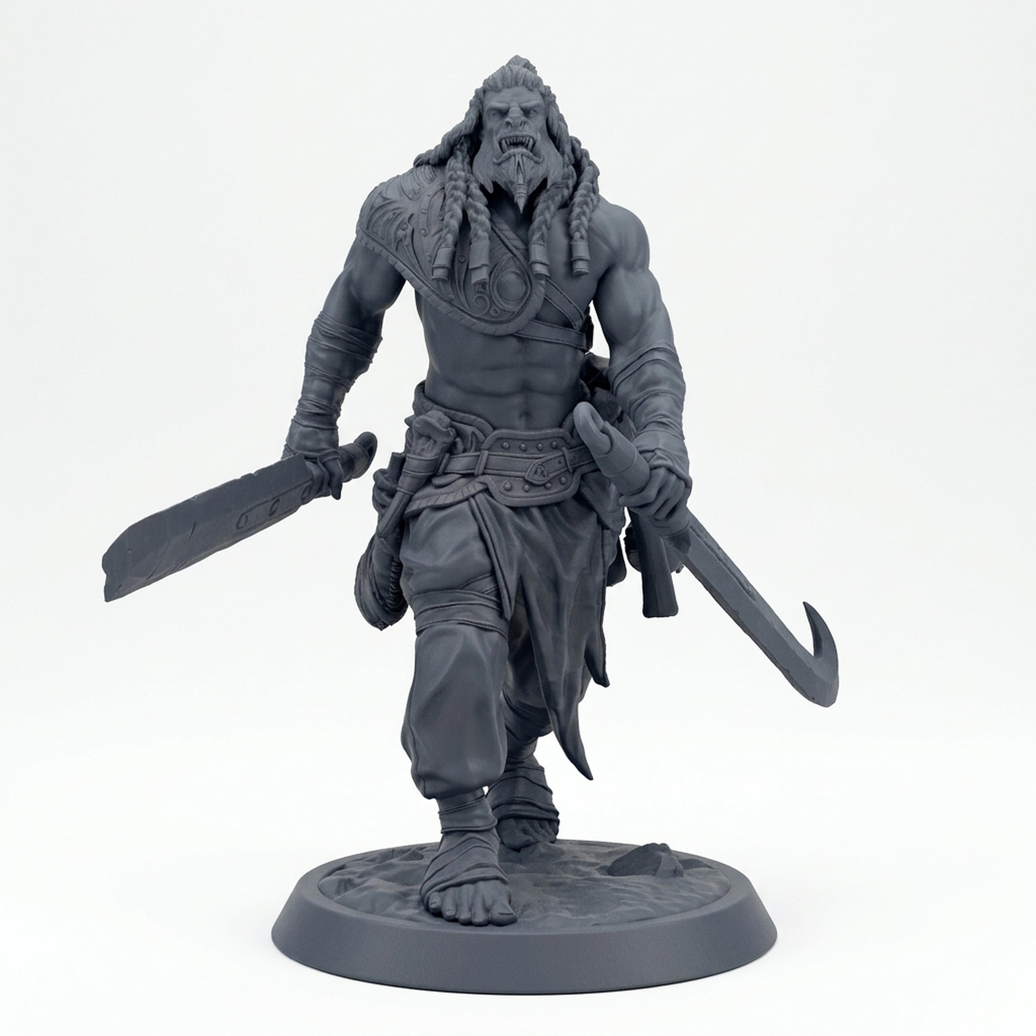 From the intricately designed armor pieces to the muscle definition and fierce expression, every aspect of this Orcsoldier Swordduel has been meticulously crafted. This miniature offers a rewarding painting experience for hobbyists of all skill levels, with sharp details that bring the character to life. The Orcsoldier Swordduel is 3D printed in high-quality resin, ensuring crisp details and a durable model for all your gaming adventures.