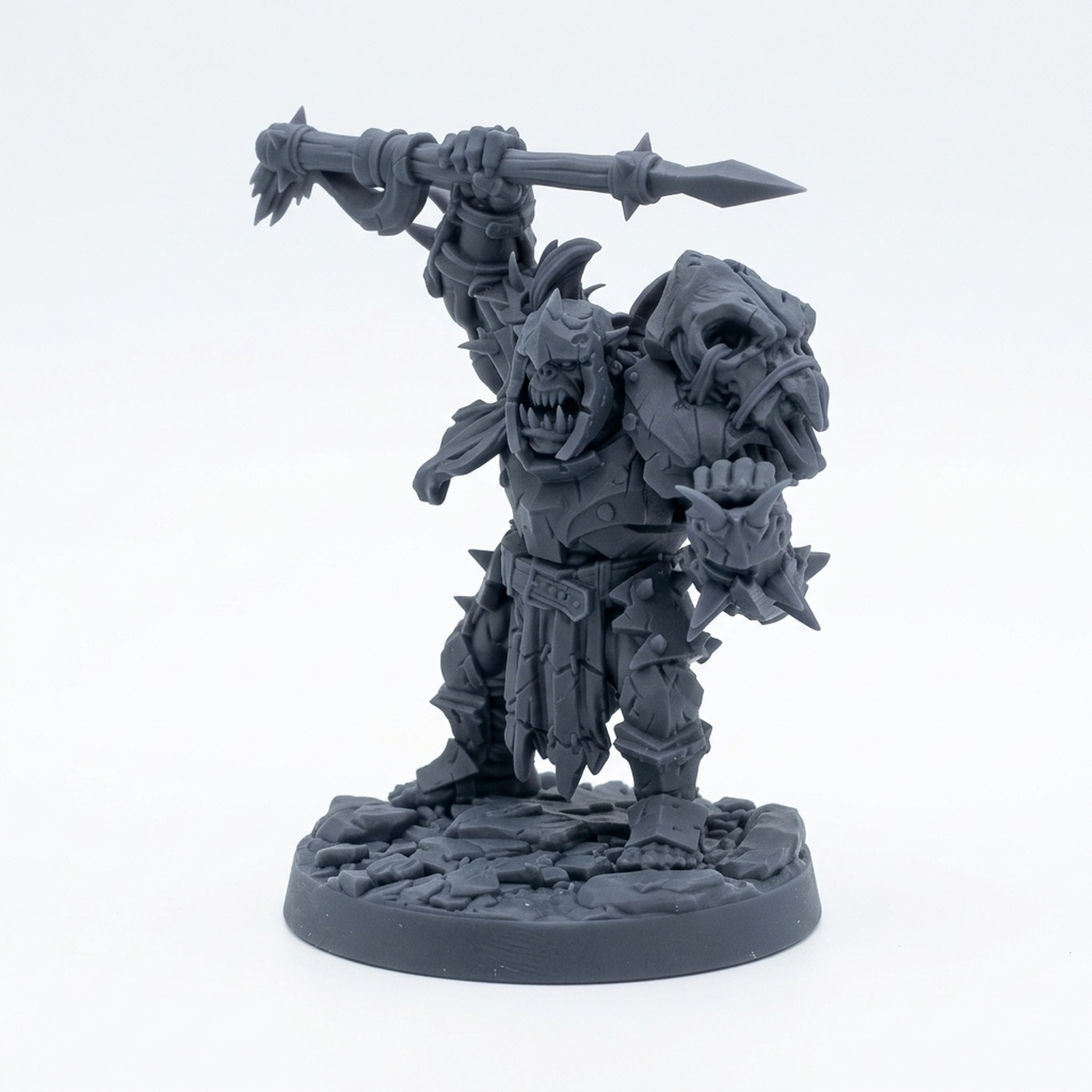 This model is 3D printed in high-quality resin, ensuring sharp details and durability. It comes unpainted and may require minimal assembly, offering you the perfect canvas to customize your ultimate Orc marauder.