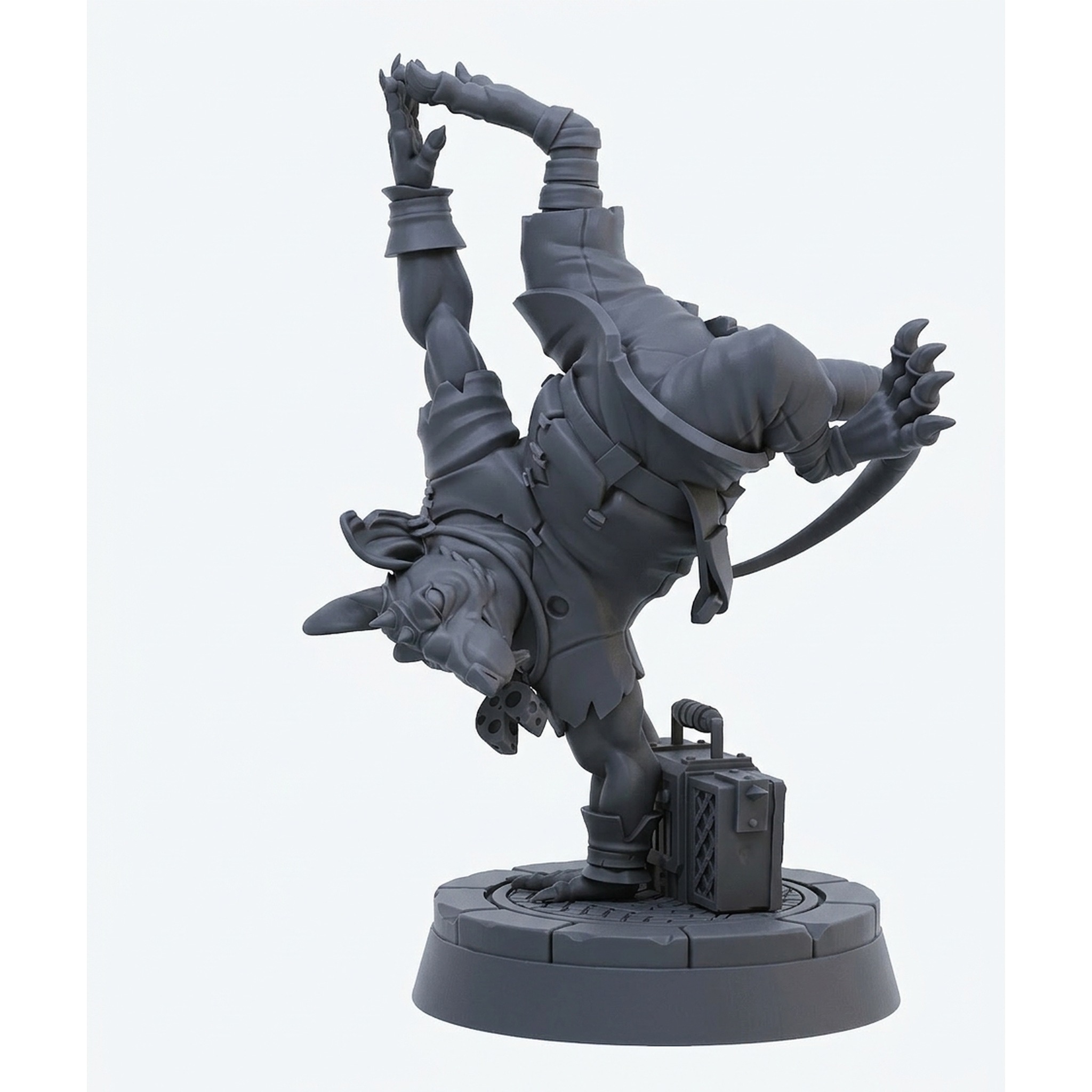 Add a unique and dynamic fighter to your tabletop adventures with the Capoeira Striker Ratfolk from the acclaimed 'The Ballad Of The Rat Plague' collection by CastnPlay. This isn't your average rodent warrior; this highly detailed miniature captures a ratfolk monk or rogue mid-maneuver, balancing on one arm in a powerful capoeira pose. The intricate details of their tattered clothing, muscular build, and agile form make them a standout character on any battlemap. He comes complete with a themed base featuring a boombox, adding character and context to his urban brawling style.
